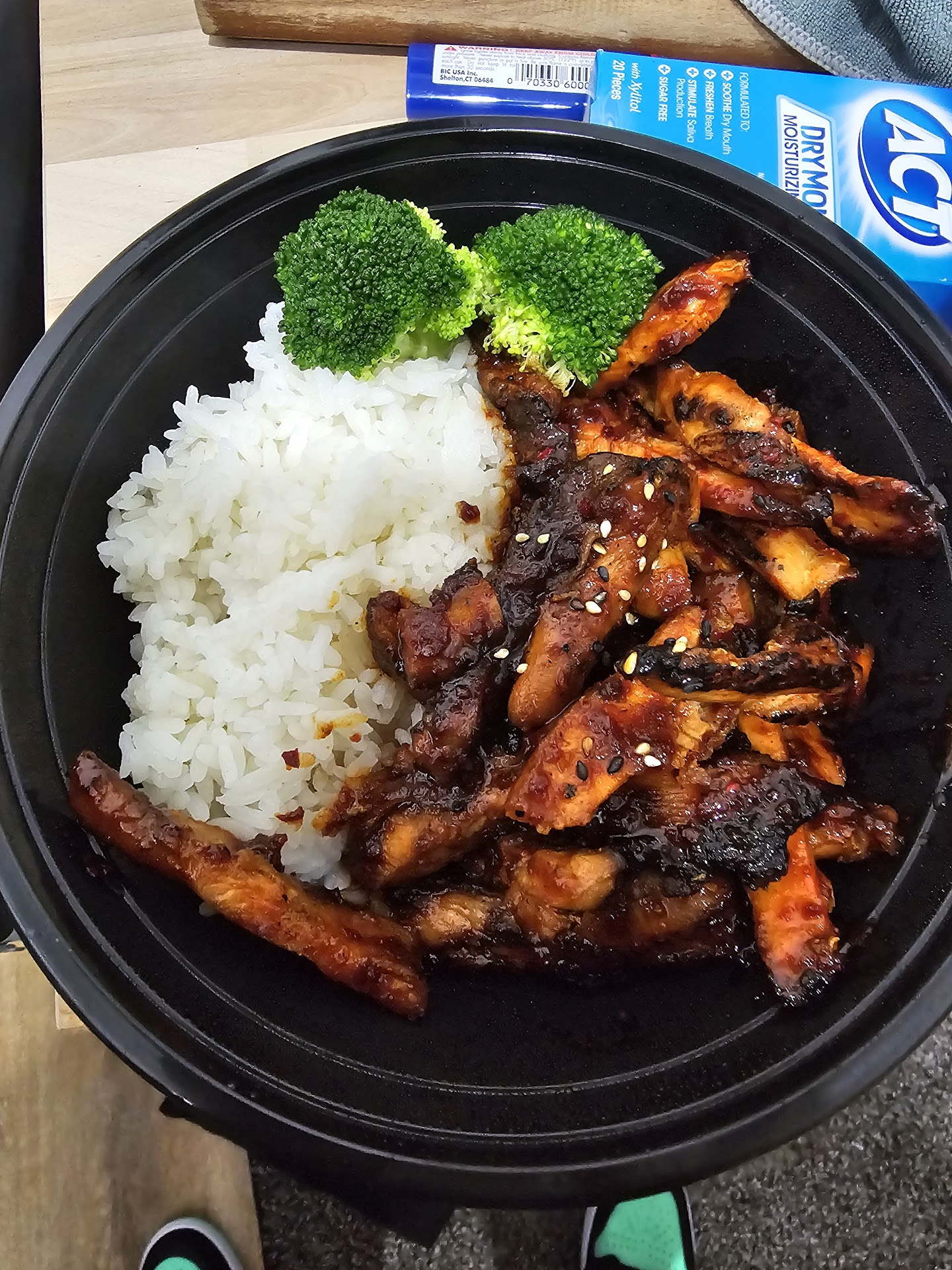 The bowl itself featured two broccoli florets with a serving of rice and spicy chicken. The chicken is quite spicy and the flavor reminds me of gochujang. Cooked to order the chicken was succulent and flavor was on point.