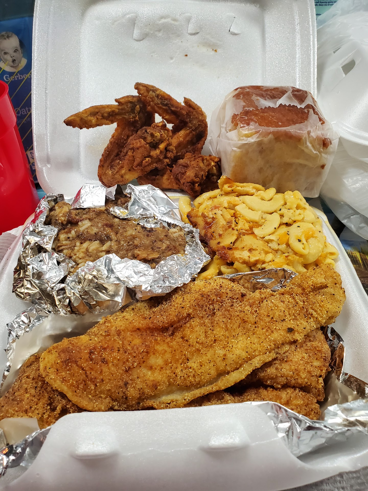 Still trying to find a replacement for the closed restaurant "Just To Serve You Too" restaurant, so I gave this place a shot. The staff was very friendly. The food was "ok". The mac and cheese was very good, but seemed to have been cooked awhile ago, so it wasn't like fresh out the oven hot, but still good even being reheated. The chicken wings was less than to be desired. It's weird because they were seasoned well but it seemed not to be floured/battered prior to being fried and cooked just to the threshold of being overcooked. So i'll have to pass on the wings for my next visit and try the seafood. My wait time was about 45 minutes, which is about what I'd normally wait for at most soul food joints. However, I can see wait times stretch to well over an hour if it gets really busy, so don't be surprised as I've read in some of the other comments. So, I do recommend the location and will be a regular customer even though I still haven't found a replacement for my favorite (now...