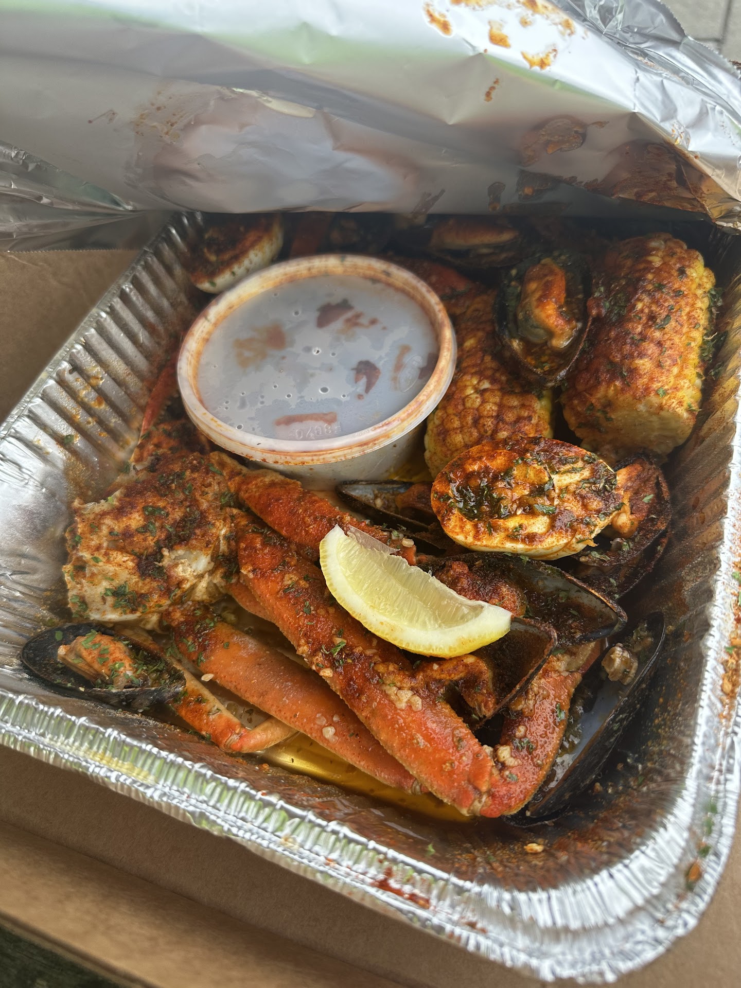 No where did it say where you order your stuff so I went to the first window where the menus were listed. The gentleman let me know in nice way that this area was for fish orders only and all other orders at the trailer. So I went to the other trailer but since it was crowded, I waited a few min to order. Then after the other gentleman with the beard was finished situating who ordered what with the cook, I then was able to place my order. I was told it would take 25-30min which I understood because they were severely short staffed.