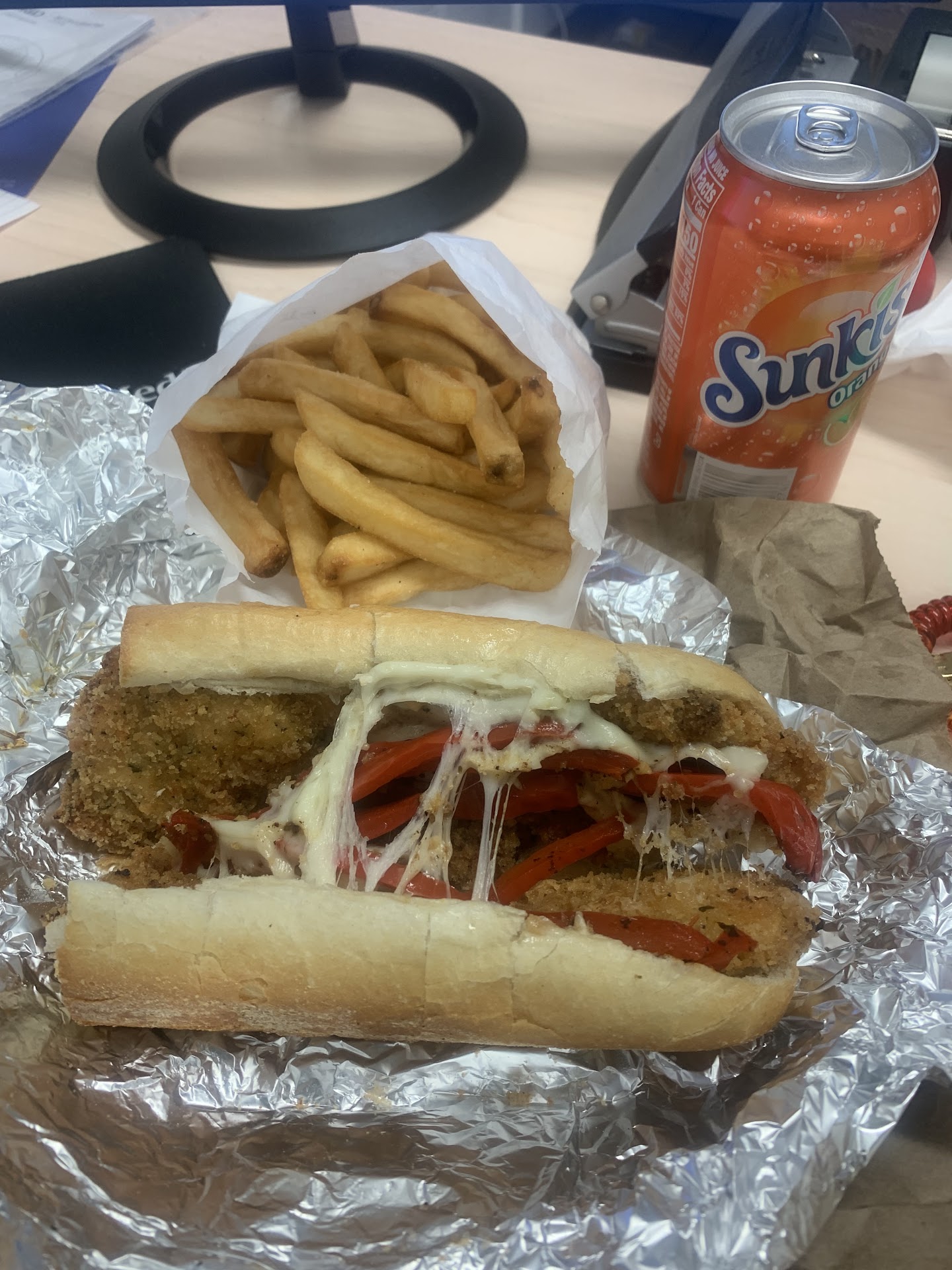 I just had the 6inch chicken cutlet with peppers and provolone w/ fries and soda. I can't believe I haven't tried them before now! The chicken was breaded nicely, you can see the cheese and it was very filling! I only ate half because there were three pieces of chicken on a toasted roll. The wait was no longer than any other truck that cooks to order. The ONLY thing that this sandwich was missing was a sauce. Add marinara or spaghetti sauce and maybe cooked onions and this sandwich would be 10/10. Without the sauce...I'd give it a 9/10! The service was very...
