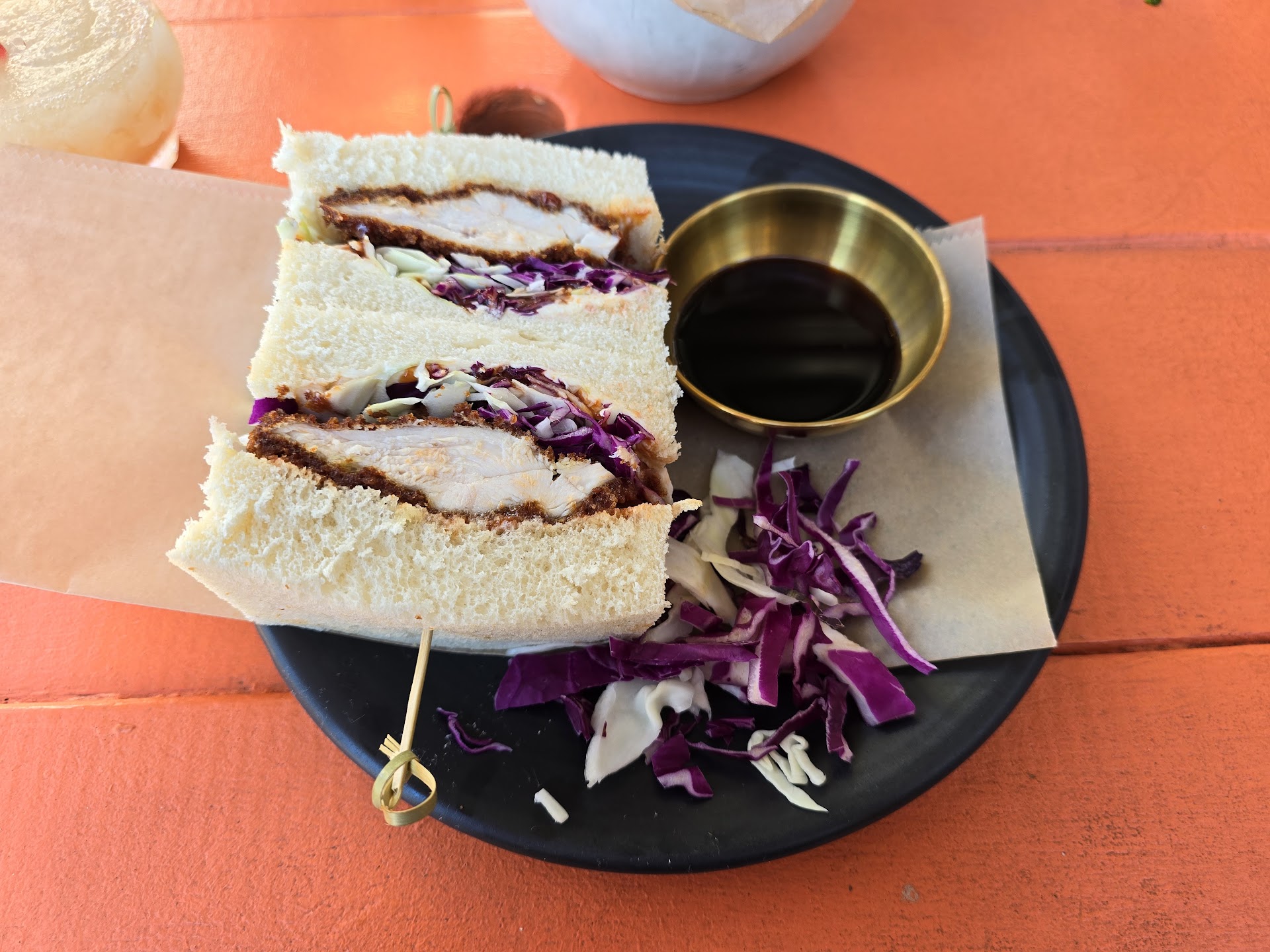 We came here entirely by chance while walking around hungry and boy am I glad we did. We were super surprised to see a Japanese staple on the menu and it was absolutely delicious. The bread is incredibly soft and is most likely delicious milk bread, the sauce is perfect and the chicken is crispy and delicious!