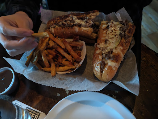 My firebird turned out to be an excellent choice. This cheesesteak comes with jalapenos, bacon, and a habanero cheese that gave an awesome kick. Wow! The 1/2 lb bacon burger looks small but is A LOT of burger and was tasty. The French onion was a unique take on a cheesesteak and came with a cup of jus on the side to dip. Nice touch. The pulled pork was slow cooked and full of BBQ flavor without being oversauced.