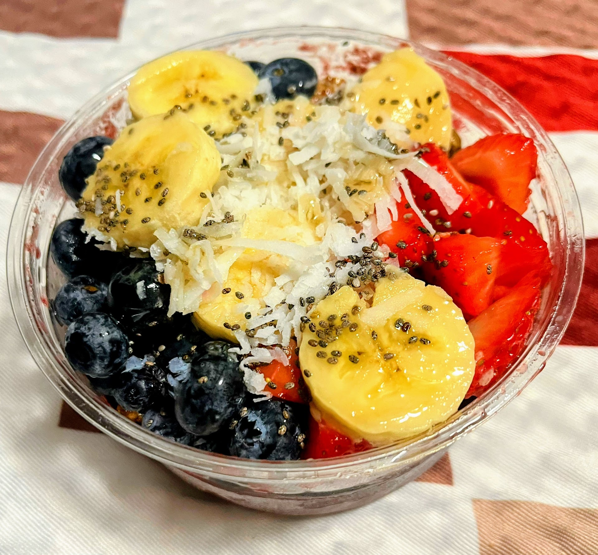 First time here- we usually go to Smoothie King but we were in the area so we gave it a try. Will not be going back. We went in, there were no orders showing on the screens and no customers in the store. We ordered 2 Acai bowls, paid and sat down to wait. A guy came in right after we ordered and ordered a protein type shake with special instructions. The person that took both of our orders, proceeded to make his first, even tho he ordered and paid after us. He looked as tho he may have come from the gym that they share a parking lot with, maybe they get special treatment??? Anyway, the Acai bowls were small, like 4" diameter and maybe 3" tall and they charge $10, other places have more than one size, they list the oz. on the menu AND they are not $10. Also, we got peanut butter on top and they charged us an additional $1.25 each for peanut butter! So, in all, it costs us over $26 for two shockingly small bowls. We did leave a 10% tip before we realized we would be pushed to the back of the line, the extra charge for peanut butter and the small size. Needless to say, we will not go back. Also, I've seen the copy and paste response that the owner puts up after every bad review. If you responded by actually addressing the problem instead of saying 'click our link' it would seem a little more genuine.