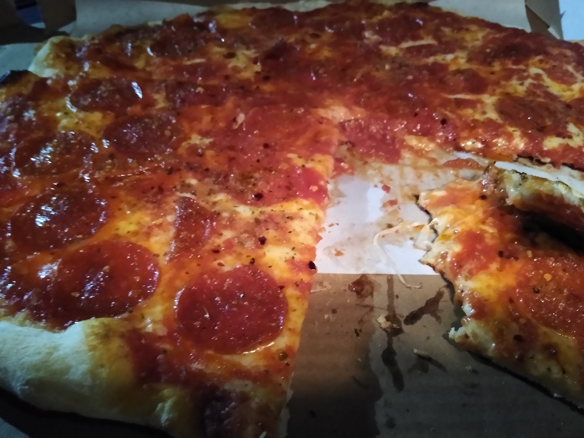 Read moreFIRST TIME, LAST TIME. Walked 2 miles in 32° weather to try the pizza. I agree with another review, order crispy crust, otherwise, the dough was soft & mushy. I didn’t want to walk home with the pie so I sat down to eat a few slices. The rude waitress says, after I was eating my second slice, “You can’t eat your pie here and besides you’re sitting in a popular spot in our dining room.” I said, “I’m sorry but it’s my 1st time here and I didn’t see any sign that says one can’t sit down to eat a few slices?” Then I got up to get a cup of water. Same rude waitress said, “You’re not allowed to use the soda dispenser even for a cup of water.” I replied once again, “I’m so sorry but it’s my first time here”. There is No Sign that says, “Dine In Orders Only”. Besides, half of the tables were vacant. I agree with other posts who commented, “There is No Sign that says Cash Only”. I’ve got to believe every sale must ring up as: No Sale! There’s only one reason why it’s CASH ONLY. The pizza is So-So (where’s the cheese?) and there is NO friendly family and NO charming atmosphere. It’s a retail plain vanilla box. Even Burger King or McDonalds has more atmosphere. First time...