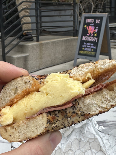 Read moregot a pork roll “Bagel” sandwich to go… more like cheap & tasteless week-old circle-shaped bread with 1.3461 slices of meat on it. The egg was dope tho ngl, the rest of the sammy was gar-báge.