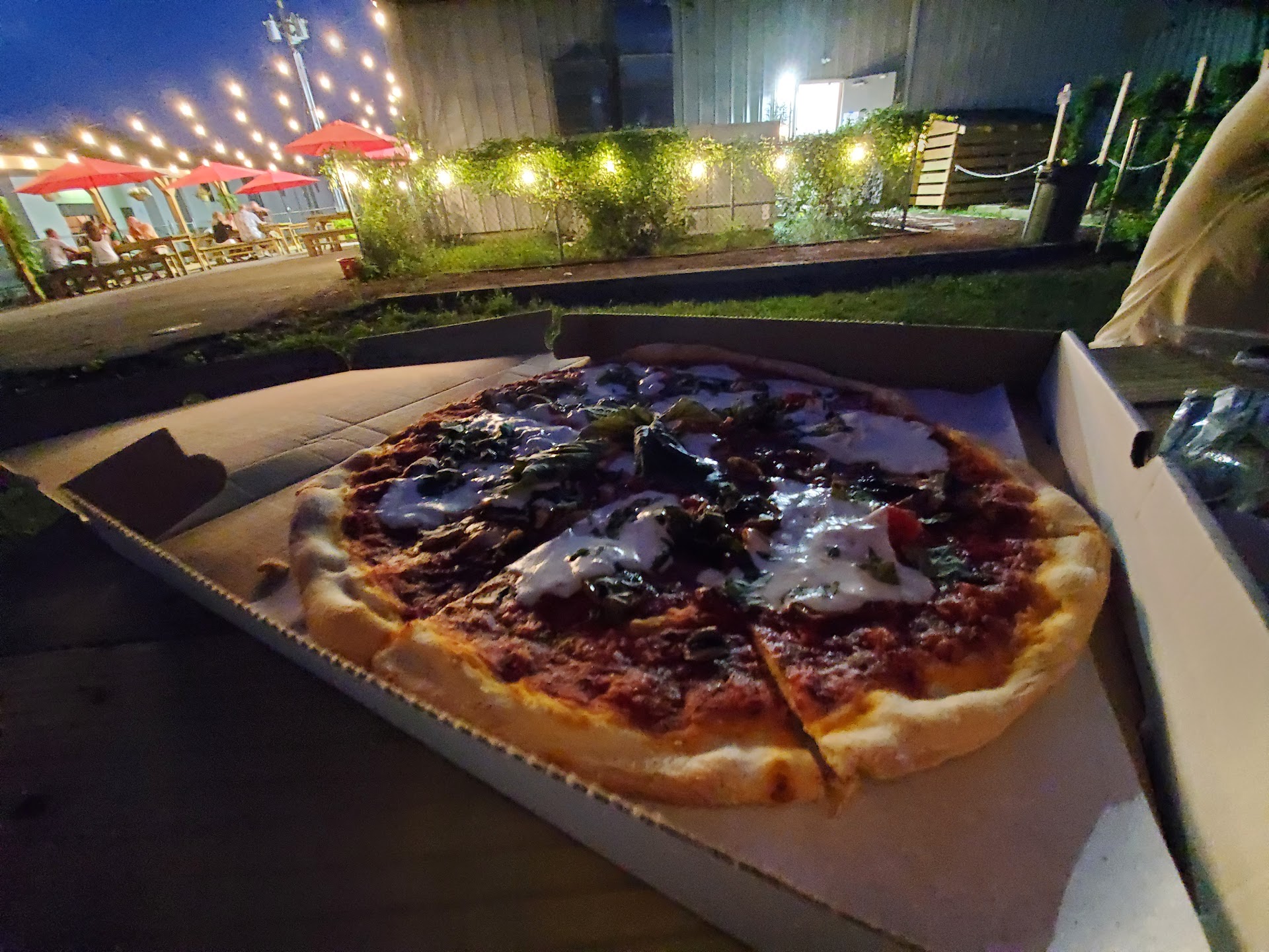 They don't have food but you can order from La Bella Via across the street and they will bring it over and serve it to you. How awesome is that? If your looking for a nice place with great beer, nice people and a great...
