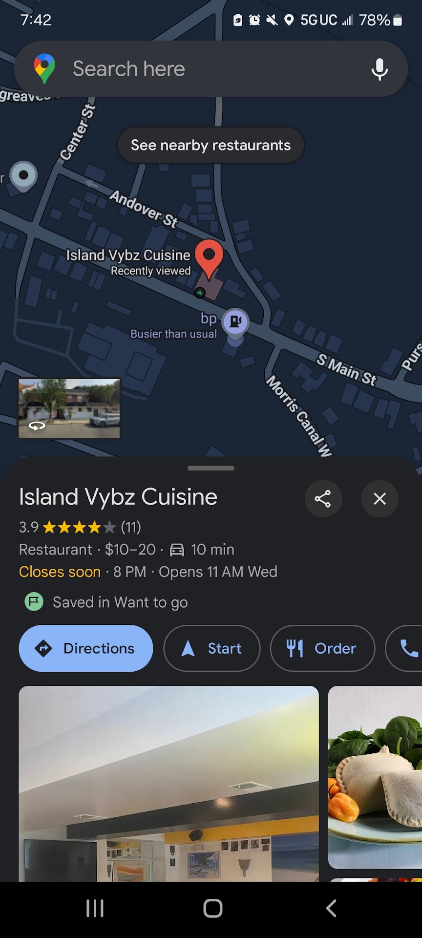 Island vybz cuisine is an awesome place to eat. Its been a long time since I had real authentic Jamaican food. The food tasted like homemade Jamaican food smiliar to what I ate when I was a kid. I ordered the goat curry platter, oxtail platter and the Island chicken wrap. After being ill all week and not having much of an appetite. This food is exactly what I needed to help bring my appetite back. The flavors I was hoping to taste were definitely delivered in the food I ate. Both the goat and oxtail were cooked beautifully. The meat for both were very tender and tastefully seasoned. The rice and beans were to cooked to perfection. The chicken in the wrap was really tasty. The owner Clifton was super friendly and took his time helping us pick out out meals. The restaurant was clean and comfortable to sit at. I will definitely be going back to try out other food. The price range is affordable. My family loved the food as well. I went early in the day so parking wasn't an...