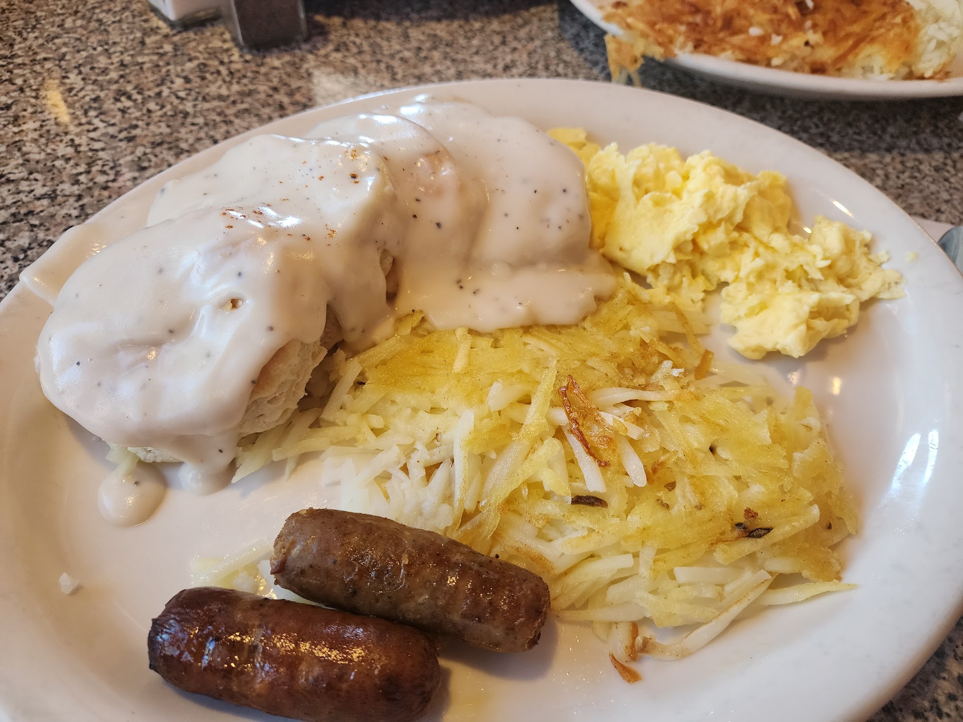 Read moreBest breakfast I've had in AZ since moving back from California! Husband took me here after having some really good Chicken Fried Steak for breakfast at this place and so worth the drive we made from Tempe! Ordered the Country Breakfast for $15, came with hash browns (super good, not too greasy and cooked light as I requested) scrambled eggs and 2 biscuits with gravy (so moist and very good gravy) with sausage or bacon (I chose sausage links and they were so flavorful and juicy)! I tried my husband's CFS (I can understand why he ordered it again!) I'm not a big chicken fried steak fan but even I would consider ordering this on their menu. It was $15 and comes with 2 eggs, hash browns, and a choice of toast, pancake, or biscuit. He ordered the pancake plus two more! We shared all of it, and the pancakes tasted like actual buttermilk pancakes, rich but not too sweet...could not help but finish them. Iced tea plus the meal was $42 after tax, but before tip. So worth it and highly recommend! Place is small but 50's diner decor, very friendly and quick service, with outdoor seating. They are 24 hours, with a very appealing lunch and dinner menu too! I'd love to try so much more, but passing up that breakfast on our next visit will be very hard to do! We found our favorite breakfast...