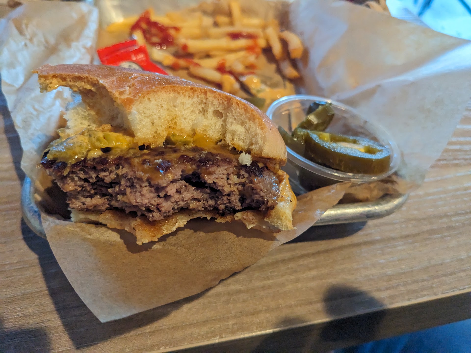 I ordered the Aioli Burger with onion rings, french fries, and a strawberry milkshake. The burger was probably one of the lower end, worse burgers that I've ever had. The meat itself is not seasoned at all and is extremely bland. I don't even think that they salt it, to be honest. They forgot the mushrooms, and the lettuce is nothing at all like the picture. I received a single thin piece of lettuce that was very wilted very dark almost like a dark blackish color. So it was old and inedible. Horrible.