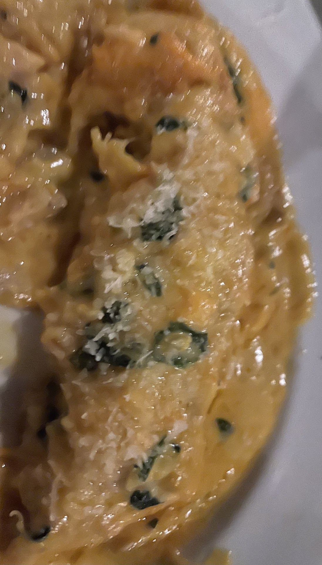 For entrees, I went with the seafood crepesâtwo large crepes, but I could only finish one, so I got to take the other home. My friend had the pork chop, which was the hit of the table, perfectly cooked with a nice crusty top. Another friend had the scallops, five large ones, cooked to perfection. For dessert, the Limoncello Mascarpone Cake was truly out of this world. The bright lemony flavor combined with white chocolate made it the best dessert ever!