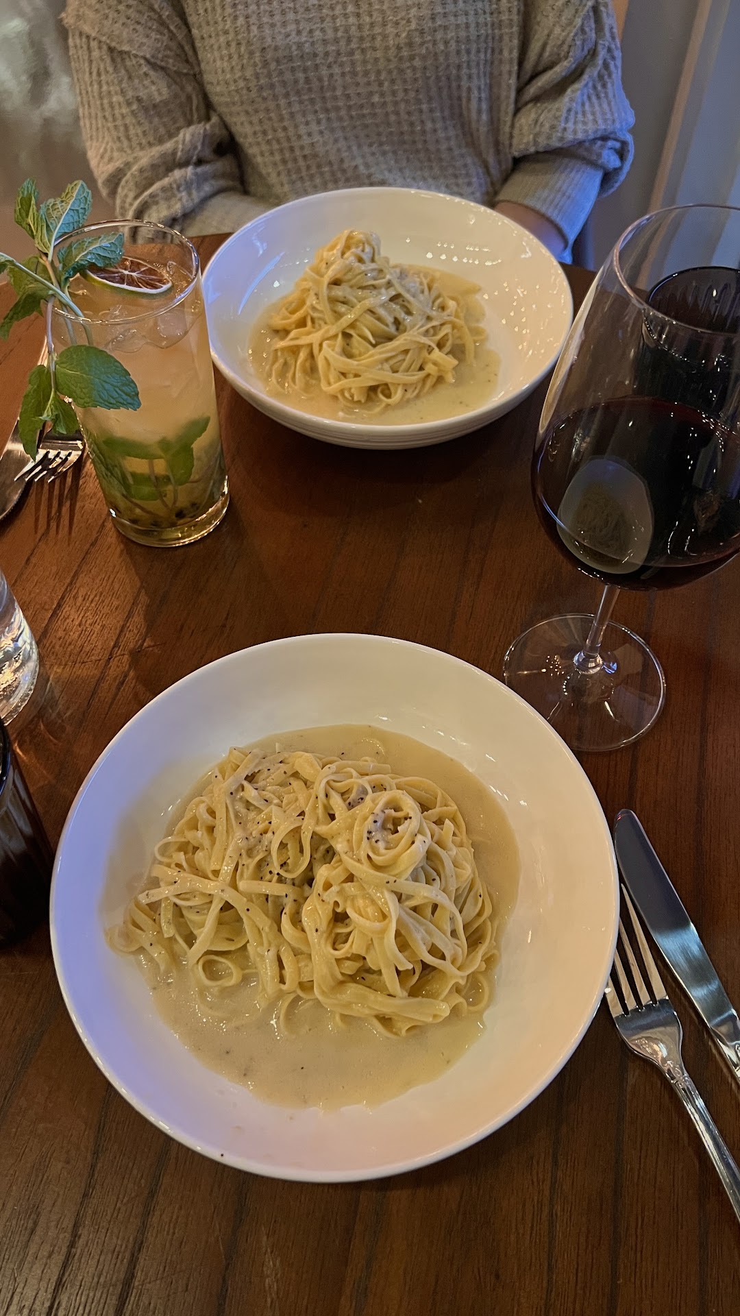 For our main course, we enjoyed the Cacio e Pepe, and it was nothing short of perfectionâcreamy, flavorful, and expertly prepared. Paired with a couple of glasses of red wine, it was an indulgence Iâll be dreaming about for a long time. We finished the meal with an incredible dessert, which was the perfect sweet ending to an already amazing evening.