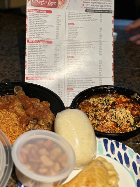 Ā Ā Ā Read moreMy Son (age 13) and I have never tried Nigerian food before and wanted to venture out and try something out of our normal cuisine. I am so excited we did and blessed that our adventure took us to Angels Naija Cuisine!! The owner was absolutely amazing and welcomed us with a smile and full of knowledge of the food and traditions the moment we walked in. We tried several different dishes and loved all of them! The portions are large so easy to share. One dish we tried was Egusi and Yam powder and that was out of this world! The dish was full of traditional spices and herbs to really allow your pallet a new experience. They offer several different rice to choose from and all are made to perfections. We will diffidently come back soon. I recommend it to anyone looking for authentic Nigerian food in the...