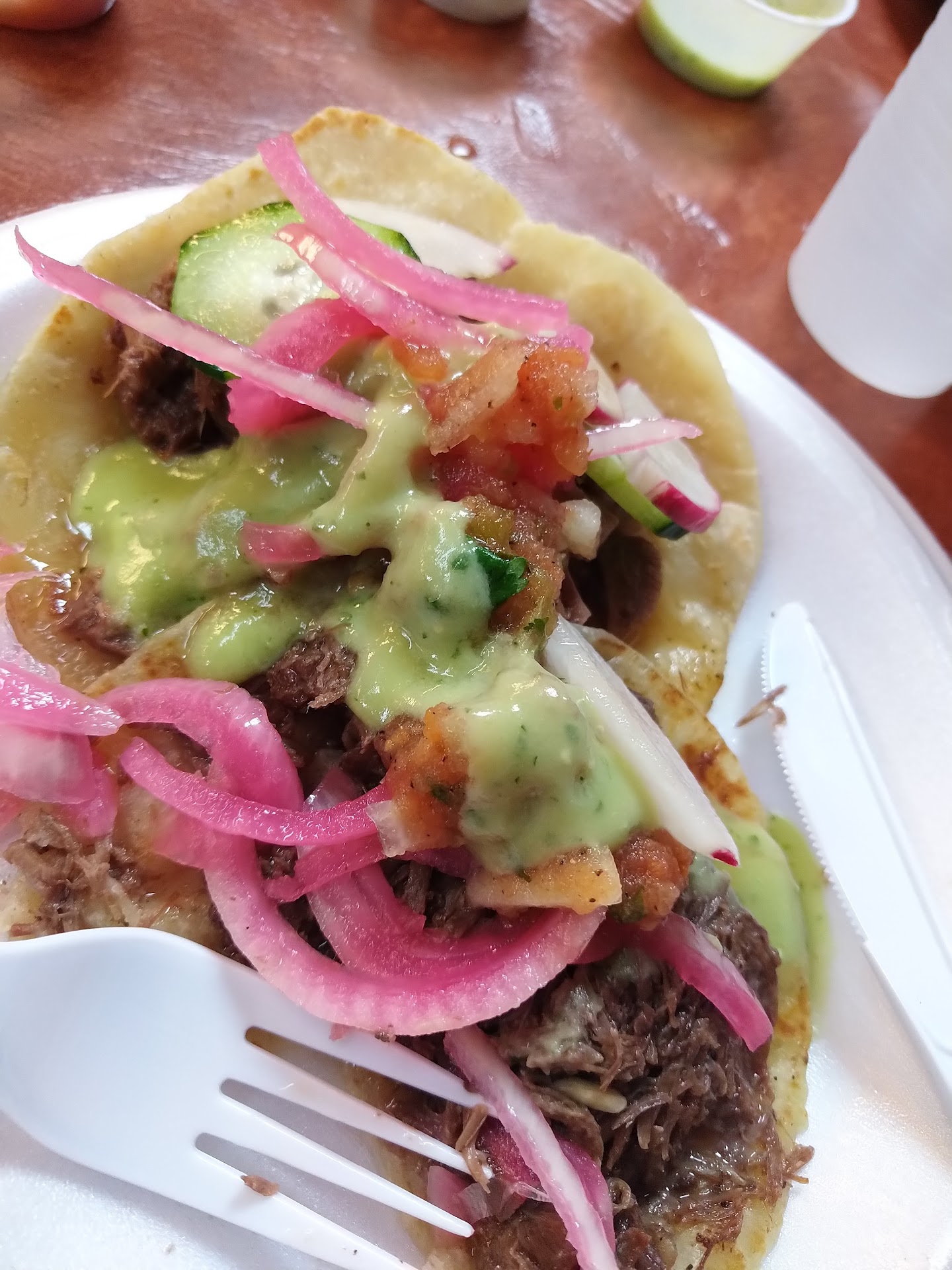 Read moreMy favorite Mexican restaurant used to be La Tolteca in Phoenix. (closed down). So a few months ago I remembered always seeing this place, thinking wth I'mma try it. Well to my great pleasure the food was delicious. I'm simple so I ordered the birria w/ rice and beans. That was regular price. 9 bucks no drink. Went today at lunchtime and they had that same combo for $6.24, that's with a drink. I went inside to order, the place was clean and they had a fresh salsa bar with cucumbers, radishes, limes, cabbage and a few different salasa. The combo made 5 hefty tacos. The rice and beans are sooo good. I'm not a fan of veggies in my rice and their beans don't taste like Fredrickos. Long story short 😆😆😆😆. I would eat here...