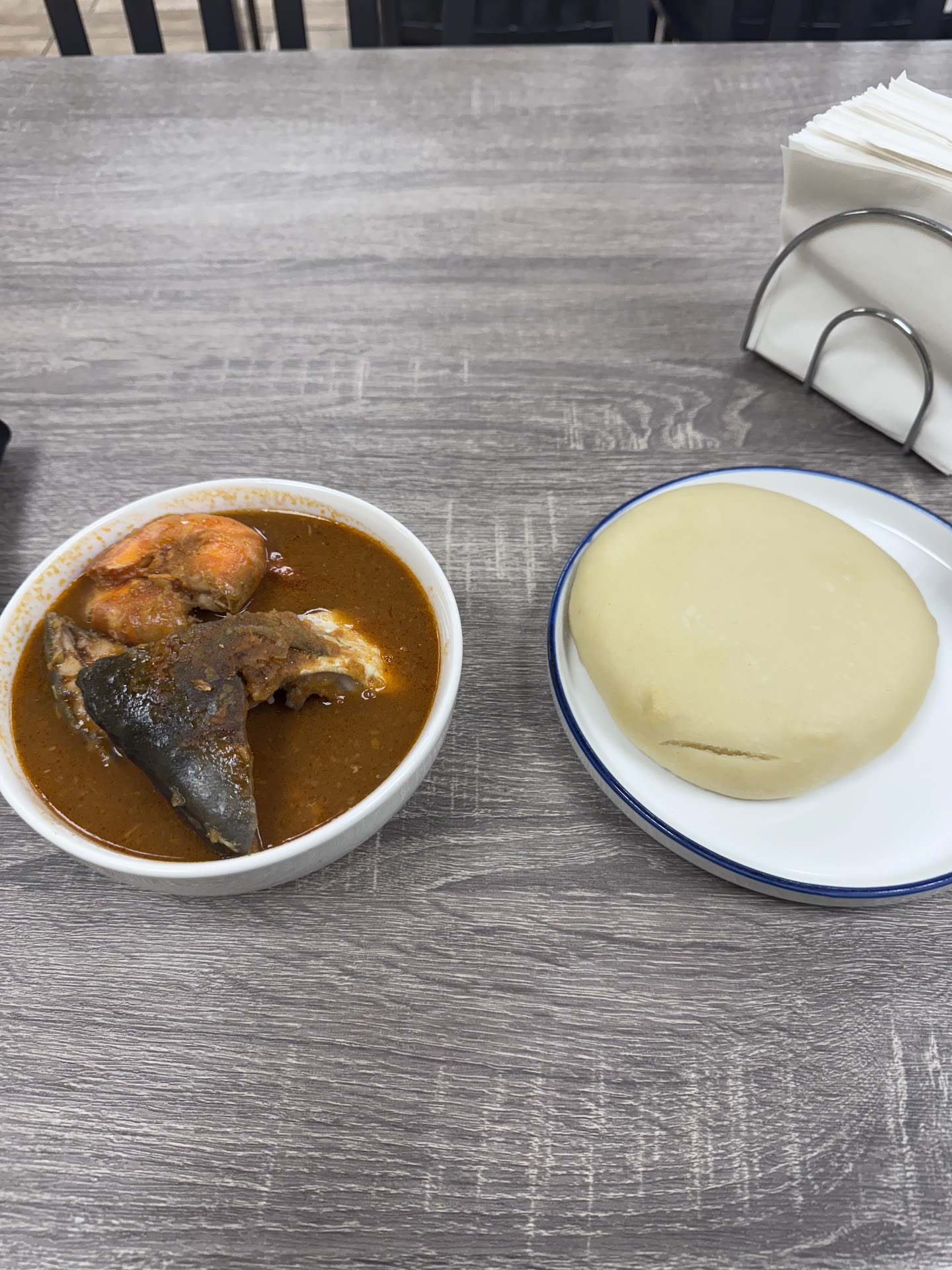 Read moreFirst time ever eating African food* So initially I went in for their chicken and beef soup thatâs on yelp/google. They said âit ran outâ itâs understandable so I asked for their next popular dish it was a fish shrimp soup with fufu. It was seasoned really really really good! I enjoyed the flavor a lot! However, Iâm Latino and this was very reminiscent to camarĂłn al diablo which is spicier than this but itâs spicy enough not to be enjoyable. (Not too much of a fan of spicy foods) fish had so much bones in it, I ended up just putting aside and not eating it. the shrimp still had the shell on it so thereâs that. Not to say it wasnât good but for the price I paid I felt like I didnât get my moneys worth, also I know I wouldnât get that ever again. They have friendly staff but the language barrier is hard to communicate. The only thing that bothered me most and I almost walked out is they had ROACHES in the dining area. Youâre probably thinking like hell nah Iâm walking out but thereâs a lot of these big corporations that still have it and you still eat at lol I really wanted to give it a chance. I was gonna a photo but I just didnât want to be extremely âkarenlyâ and as soon as I walked in I got the hint of RAID the roach spray even the guy after me said it smelled like it. Just putting it all out there so you know. I wouldnât wouldnât go back mostly cause the price $30 a bowl and fufu that I didnât...