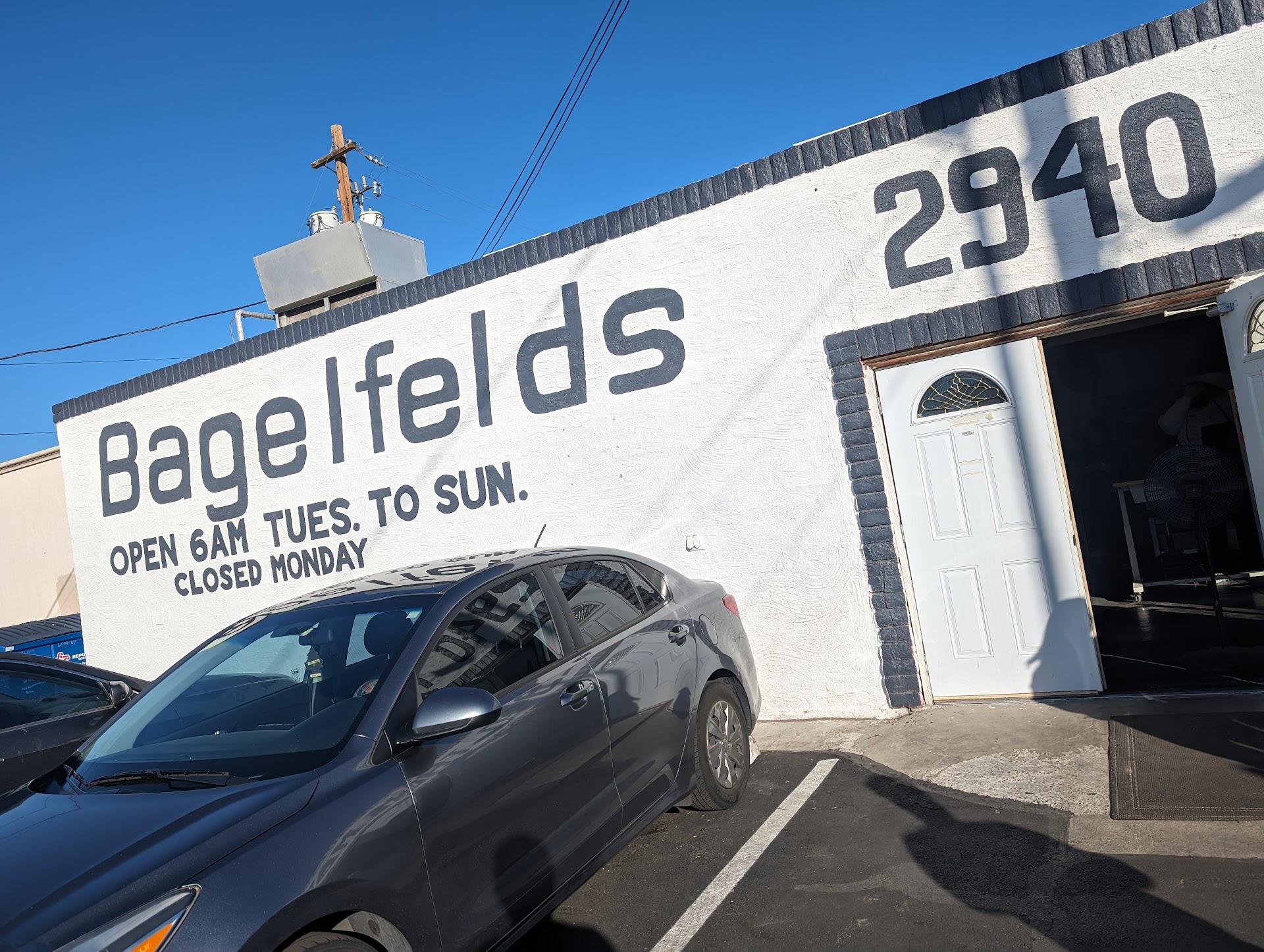 Read moreSo do you remember the Pizza dude scene from the 1990 Ninja Turtles movie? The Dominoes delivery driver is looking for 122 1/8... trying to find Bagelfeld is a similar situation 😂. It's sandwiched between 2 buildings, the store is actually behind both of them. When walking up to their building you'll notice a sign to please park on the side street. I was looking for a great bagel and went over to Google's reviews where this place was high on the list. And it did not disappoint. An old store front or shop it has been transformed into a bagel shop. You walk in through the right side to order near the center and exit the left door to wait for your number to be called. By the time we arrived half of the bagels had sold out. We ordered two everything bagels,one with butter and the other with plain cream cheese. At the time they were out of everything bagels but a new batch would be out in 5 minutes. We joined the 8 other customers outside to wait. And magically in about 6 minutes the bagels were ready. The bagels come out of the oven basically toasted. After grabbing the bagel and taking the first bite this was an ASMR explosion. Super crispy and crackling on the outside and super fluffy on the inside. The best part was the amount of butter and cream cheese,this bagels were dripping! Average cost was about $3 per bagel. Definitely will be returning....this might be the best...
