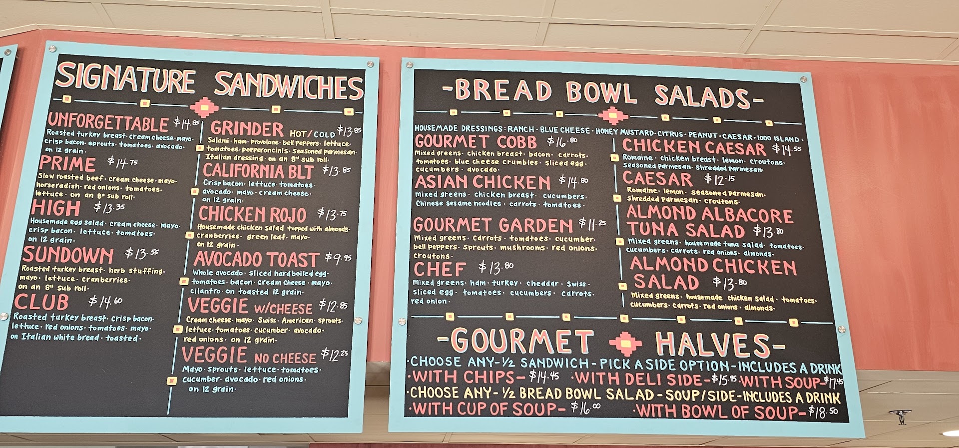 Price for sandwich and pasta salad was $18 and change so not cheap. A half tuna, with Avocado which I ordered also to test ad that was their 'best' sandwich was $17 and change, again, on the higher side for just a sandwich. You do get a side and a drink for the half sandwich, which the size is sufficient for a lunch.