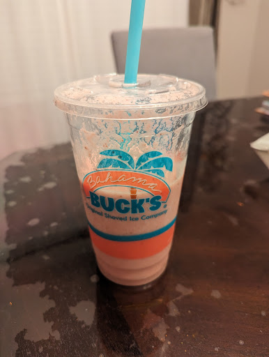 Bahama Bucks Shaved Ice is the perfect treat for scorching summer days, offering a refreshing escape from the heat. Located at Chandler & 48th, delivers on flavor and friendly service. In honor of Independence Day, they creatively swapped their usual decoration with a miniature American flag topping the shaved ice instead of the customary parasol. It’s the little things 😀 Their shaved ice itself is a delight—fluffy, finely shaved ice that melts in your mouth, complemented by a wide array of flavors ranging from classic cherry to exotic mango. The texture is perfect, neither too coarse nor too fine, ensuring each bite is as enjoyable as the last. We throughly enjoyed pins colada, black cherry, 1/2 dragons breath + 1/2 blue raspberry and SF mango. The ambiance at Bahama Bucks is lively and welcoming, with cheerful staff ready to assist in choosing flavors or making recommendations. The seating area, is super cute with games available to pass time. Oh la la the AC felt so good! Overall, Bahama Bucks Shaved Ice is a must-visit! We...