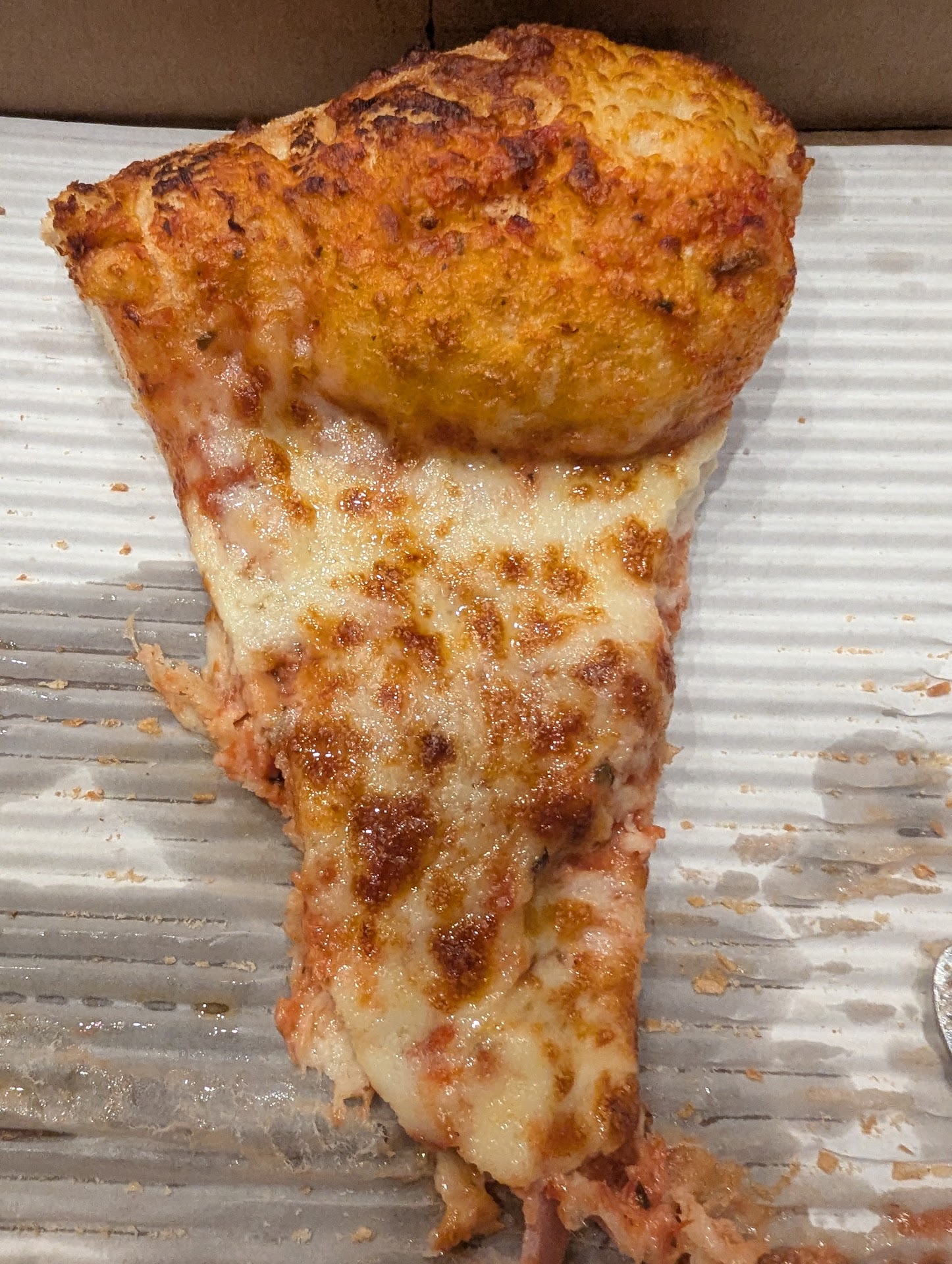 The comment was a bit odd but I won't read to much in it. Was I was supposed to interpret it as a special gesture for waiting even though in reality it was no bigger than I would've gotten otherwise? While I might gripe that they didn't attempt to make it up to me with a free drink, I hadn't actually wanted more food than what I purchased. Of course it was now after 3 when the lunch period ends and I've witnessed before how those unsold slices go straight to the trash bin so throwing in one more certainly wouldn't have hurt them as far as that goes.