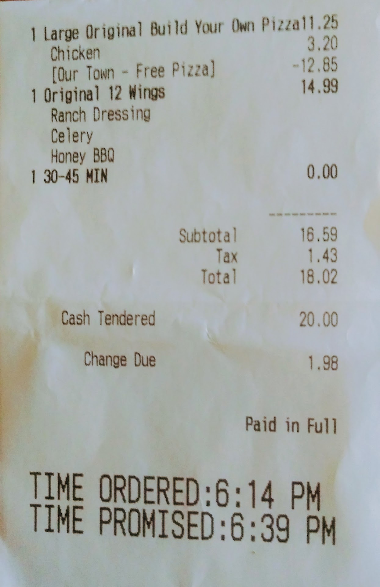 Finally after another minute or two the original guy back came out front. At least he immediately asked if I ever got my pizza. Well no, that's why I'm still holding this here number thingy in my hand. He didn't seem aware of my last two staff interactions as best I could tell from the conversation.