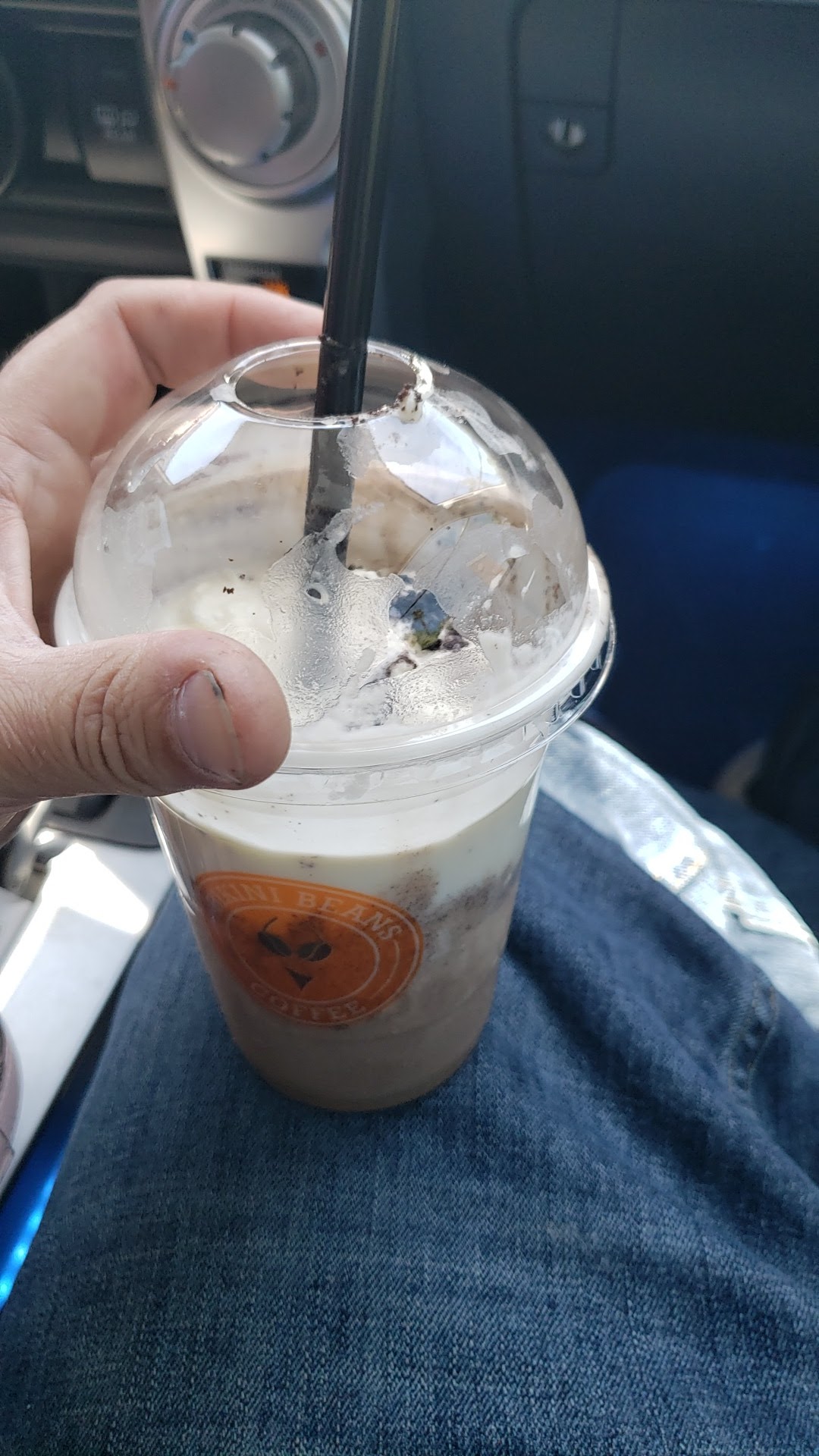 Read moreWe live on Bell road and have to say this is the only good coffee place near us. They don't do white coffee but they have pretty good coffees regardless. I'm not the whole sweet and pricy star bucks type which I hate Starbucks anyway...to commercialized for me. Prefer local, anyhow thats me but yeah their sizes are actual bra sizes lol...a cup, b cup. Dds etc...lol and they wear bikinis some its not needed I just want a good brew. We take our daughter she like the vanilla bean frappe with Carmel and whipped cream. Its tasteful enough for kids its not a top less or lingerie style. Anyhow...just my info. For the joint and like it enough. Thanks all....keep it rocking! Little melted already, but its still good that wS a cookie monster my wife ordered....