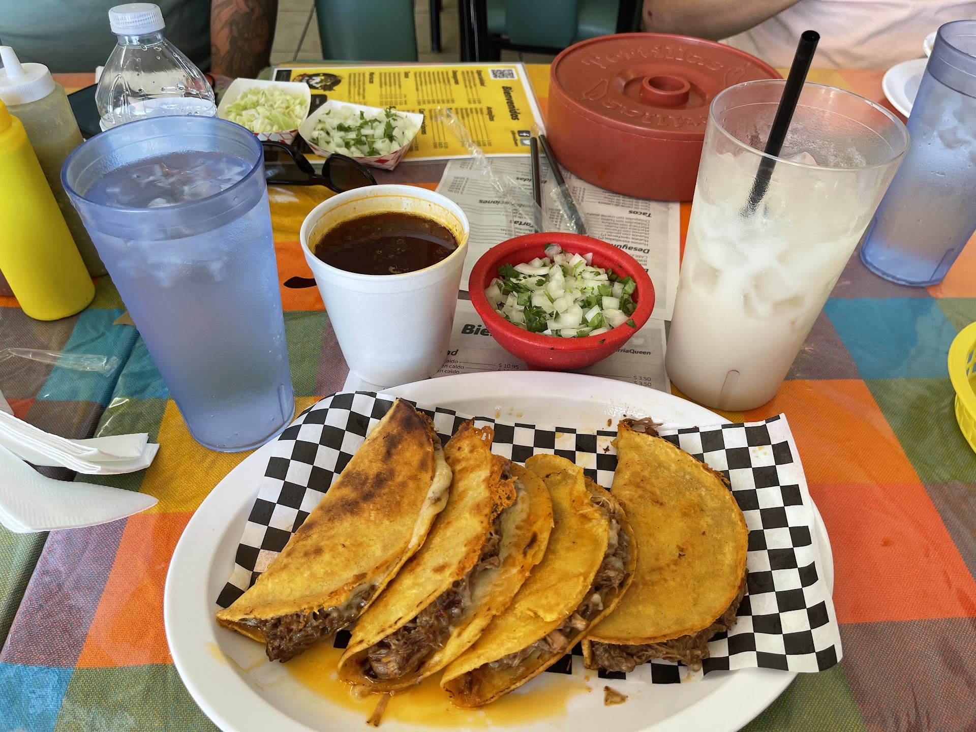 Read moreI had the queso birria tacos, they were really good. Very meaty and cheesy and had a nice crisp. Don’t forget to ask for the dip on the side. I couldn’t really see these tacos or the dip on the menu, maybe they go by a different name here. The horchata was pretty good too, I think I would have liked a little more cinnamon there. My buddies had the menudo, burrito and normal tacos de asada. Those guys said the burrito was just ok, the soups were good. I would definitely come back for the queso birria tacos. I marked $20-30 a person on my review, my friends also had some micheladas (that they enjoyed) that brought it to...