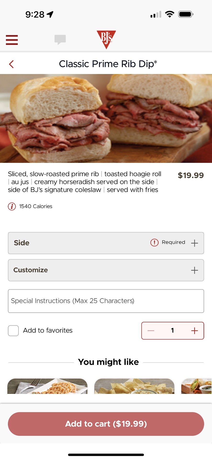 Ā Ā Ā Read moreUPDATE: pretty sad response but what did I expect? Went there to pick up take out grabbed food for me and my family got there a little early so had to wait I didnāt mind that I prefer hot food. Got the food waited to check to make sure everything was there because BJs usually gets it right but not this time the French dip is $19.99 on bjs app. $22.99 on uber eats most expensive French dip in the valley. They didnāt add the cheese that I paid xtra for they left out my sides. When I drove back to the store I was obviously upset they offered to remake it and a manager came out and gave me a gift card. Itās not about the money itās about the inconvenience. They said they remade it but all they did is put the sandwich in the microwave with a little cheese on top. And it tasted like it. So if thereās something wrong with your meal donāt expect them to make a new one they will just do whatever they have to so they donāt have to throw that away. Other reviews have stated as well. That being said I had to eat my microwaved $22.00 French dip while my family had cold food because I was waiting for them to remake the sandwich but was never remade just reheated ruined my day. Blonde hair lady manager chose to give me the same sandwich instead of replacing it should get some training as well as the entitled Togo staff that thinks itās funny when people complain about service especially about them. Itās your service thatās laughable. I go there all the time for deliveries itās a shame to realize that they are treating my customers like this as well. I guess if I do go there for deliveries in the future Iām going to have to be more cautious and check every delivery since the employees at BJs canāt do there job. One other thing do we tip fast food restaurants to pack up our Togo food no. I get Togo food to avoid tipping I shouldnāt be strong armed into tipping for a Togo order and service should not be withheld because I didnāt tip enough. If it is being withheld because of tips thatās an issue that owners need to address. Maybe pay more to people who pack the...