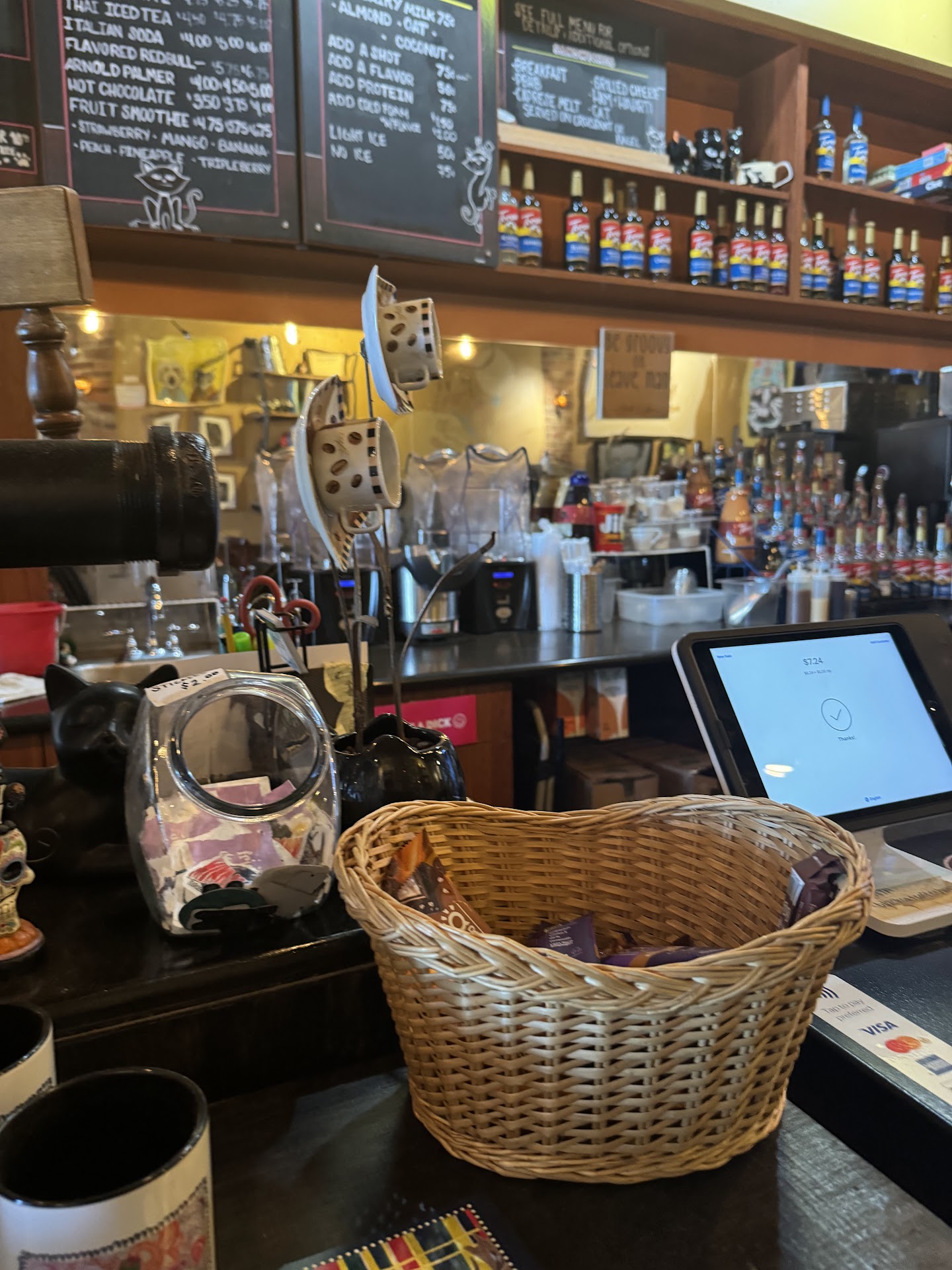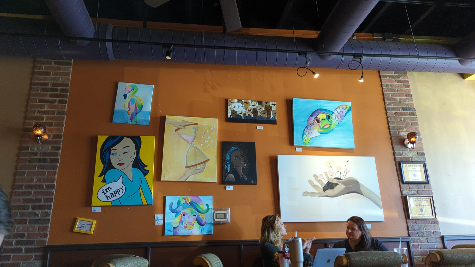 Notice to Artists and Makers who aspire to feature their work on these walls: you will pay a $100 non-refundable fee under the table (handshake deal) for the allowance to feature your work on this shops’ walls. The owner reserves the right to rescind this allowance without as much as a 2-3 week notice, and don’t be surprised if it is sprung on you on your next visit in person rather than done through a call, text, or social media request to talk beforehand. Be prepared for it to possibly take place in front of your family, too.