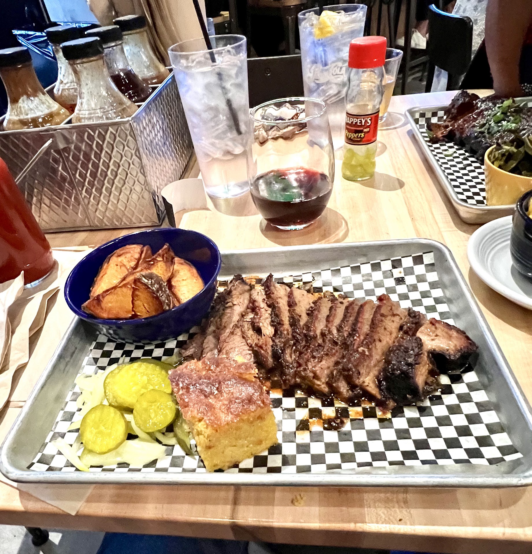 Sides we tried were the jalapeno cornbread (the flavor balance was about 90% cornbread with a weak 10% jalapeno. I would have liked a greater jalapeno flavor. It is a true savory cornbread with a traditional granular texture and solid body. It won't crumble away in your finger and is hearty. A nice honey butter would be a great flavor pairing). The beans are a solid 8/10, nothing special or remarkable to make them stand out on their own but combined with a meat make a good meal). The mustard potato salad was by far my favorite side (a creamy mayo and mustard sauce over crisp onion and potatoes cooked firm, not mushy, was a pleasant surprise. I don't like mustard potato salad in general, but whatever they did to make this recipe was 100/10 for me. I will go back just for this potato salad TBH)