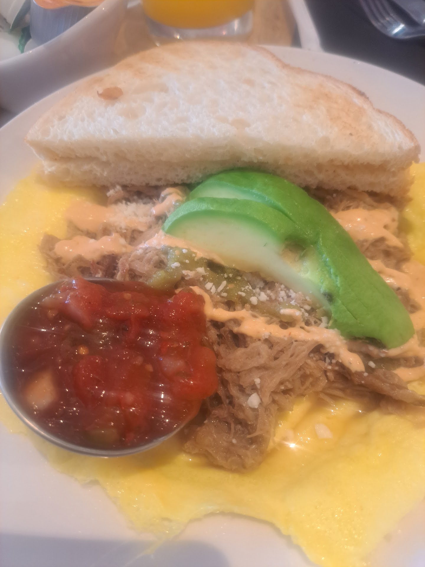 Probably one of the worst experiences I have ever had going out to eat. Our recent visit was a letdown, primarily due to a lack of transparency and poor service. We arrived on a hot day and waited 30 minutes outside, since there was no room to wait indoors. We were okay with waiting and being outside until our table was called, expecting to cool off inside. We were not told upon arrival that the air conditioning was broken until after we were seated, after I mentioned how hot it was. It was extremely uncomfortable for us and for the staff, who were all visibly sweating. The visible beads of sweat on our server and other staff members were a major hygiene concern. I felt bad for them, but it was difficult not to worry about the cleanliness of our food and drinks. It made me wonder about the conditions for the cooks in the kitchen—if the front-of-house staff was sweating that much, it must have been even worse in the kitchen. It was hard to enjoy our meal while being concerned about sweat potentially getting into our food or drinks. The service was also slow. Our drinks and food took a long time to arrive. The food itself was a major disappointment, especially for the price. I ordered the avocado toast, which the menu described as a "thick cut sliced bread." It was a single, thin slice of bread that wasn't toasted at all and was very difficult to cut into It had a minimal amount of toppings and a cold egg, all for around $16. It was a poor value for the portion size. It was hard to enjoy the meal in such a hot and humid environment. The manager circulated, but never acknowledged the problem or offered any compensation, which would have gone a long way. I know things happen like the AC going out isn’t in their control but at least telling people straight up so they can make a decision whether to stay or not. There were no fans either. The AC barely started working as we were leaving. The lack of communication, slow service, and major hygiene concerns means we will not...