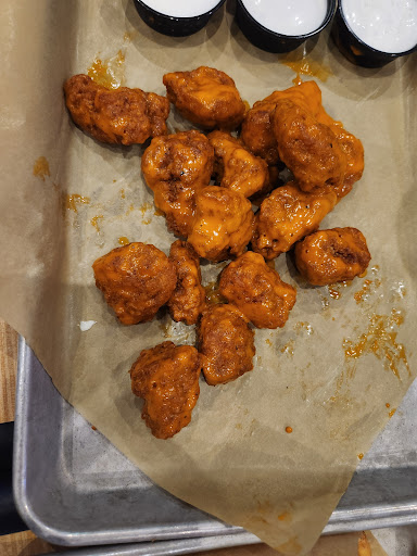 Read moreIt hurts my heart to write a review like this for Buffalo Wild Wings because generally it's a pretty great place. However tonight just sucked! There's really no other way to put it. We came in for our anniversary and ordered off the menu including an appetizer. 15 minutes later they brought our meal out but no appetizer. When I mentioned to the staff that it is generally a well-known fact that an appetizer comes first they said that the kitchen was having lots of problems. I mentioned to our server that she is the one that had to put the order in. So I don't know that it's the kitchen that screwed this. We just asked them to cancel the order since we didn't need it anymore. I ordered the beer cheese steak sandwich. The Cheesesteak portion of the sandwich was actually pretty good. However the bread that it was served in was stale. In addition the Boneless nuggets that my wife got tasted like they had been cooked for some time before they were served. It was also clear that they had not tossed the nuggets in any respectable form or fashion, as you can see by the pictures. So the sauce was wildly uneven in its application. When we expressed some of our discontent to the server she seemed fairly annoyed at our talking to her about it. We never heard from a manager but they also had the look on their face like they were annoyed that anybody was there eating at this very moment. Lastly we had a gift card on our phone and when we handed it to the server she seemed like she had no idea what she was supposed to do with that. I actually had to talk her through what she needed to do next. Literally have never had a worse experience at a Buffalo Wild Wings and I have been to way more than I probably should. Including this one specifically. Thank goodness it's not normally trash like it was this evening. They did take the appetizer off that they never brought, and in doing so made it seem like they did a...