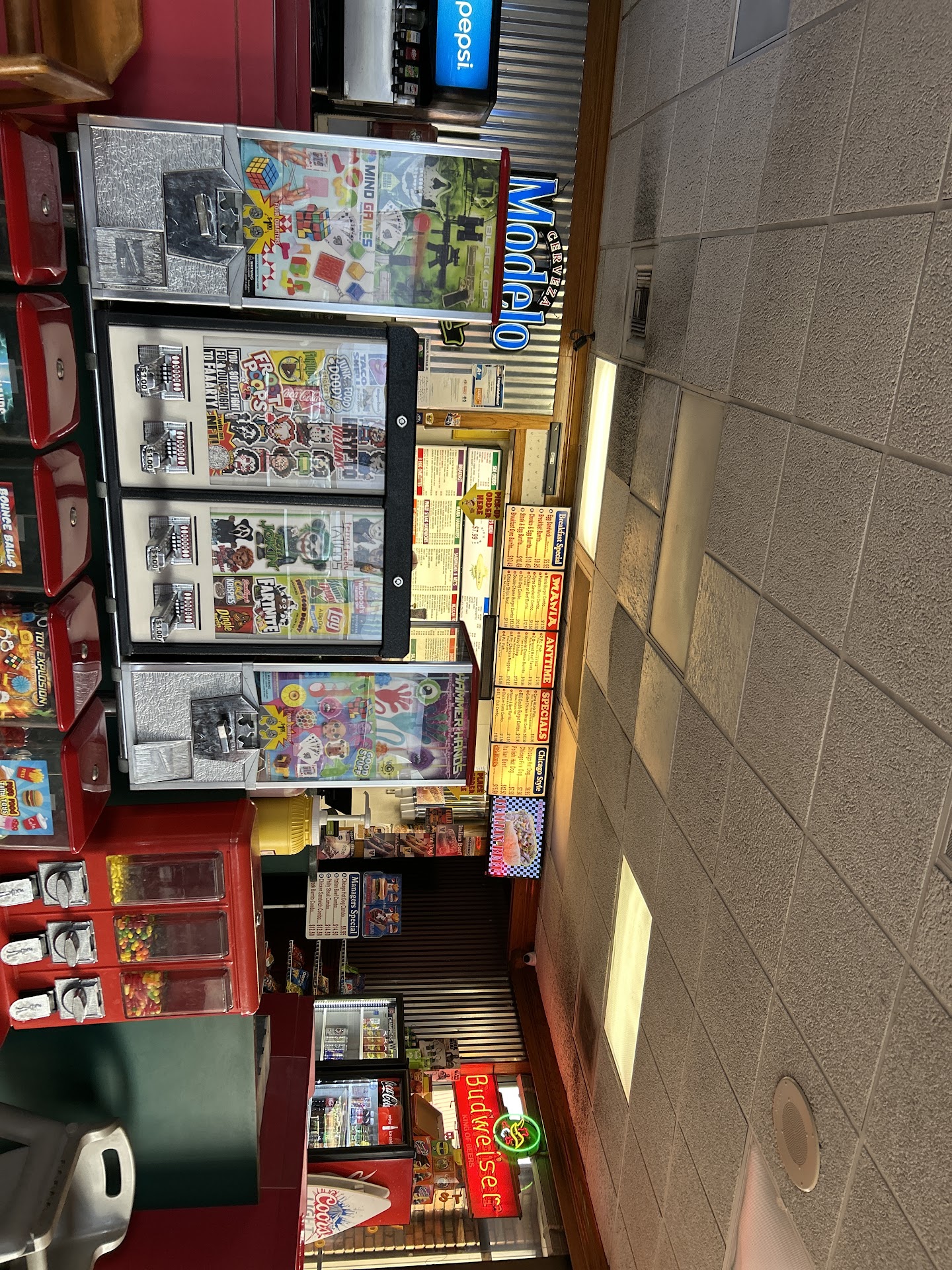Read moreThe outside with neon lighting is very catchy,and hard for one to pass up and miss from the road,it looks like a live Coral amoungst dead ones around it,glowing where others black,really neat looking.But that's where it ends.The quality of food is lackluster at best,outright bland and dry,food not prepared right.They claim,by their name of Fame:"hamburger mania".Well there is more things on the menu that aren't hamburgers,than are.Thus where does the name fit in relationship yo it's menu.If your name has hamburgers in it it should reflect that.Thats your specialty.Furthermore,it is cheaper to sell hamburgers than most other things on the menu,hamburgers -generally speaking -are small handheld food stuff,in comparison with a larger hogie, submarine sandwiche or other examples of food like burritos and such.But the hamburgers here are relatively small,tasteless and are just as expensive as larger items on menu.If your name is hamburger whatever,then stand out as a hamburger place,like what-a-burger,now they have a hamburger that you need two hands to eat it,all for half the price this place sells them for.Very disappointed for the amount of money I paid.Over $20.00 for taking the edge off my hungry belly.I left still being able to eat more,but time element dictated otherwise.I left disappointed to say the least.At least I got a thrill out of the interior decorating.It is eye catching,but I also want it to be belly...