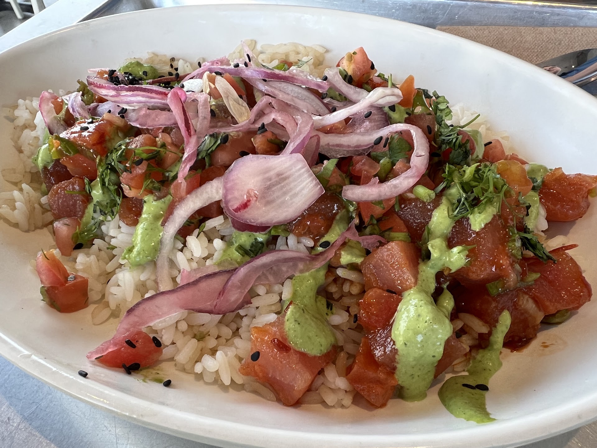 Read moreIt was a busy lunchtime. So, it took a little while for our food to come. Once it came, though, yumm! There were a lot of vegetarian choices for the main dishes and sides. The mushrooms in my veggie bowl were delectable. I'm not a huge fan of mushrooms, and I couldn't get enough of these because they were so well seasoned. I had to double-check that they were actually mushrooms. The fish tacos smelled great, and though I don't eat fish, I was tempted. The onions were cooked to perfection. and the fish smelled so good. Considering this is called the California FISH Grill, I would have expected the restaurant to smell a little fishy. Nope, it was great, very clean. We also had the fried, breaded green beans, I forgot to take a picture before we scarfed those down. The veggie bowl had everything cooked perfectly. The brown rice was just right. The zucchini was crisp and tasty. I had enough to take home leftovers. They also have great drink offerings at the soda fountain. The typical Pepsi and Diet Pepsi, Ice Tea, and a fruit herbal tea. But the soda station had a bunch of cream soda style sodas to choose from. There was a vanilla cream and a pineapple cream soda. It's really interesting. I would definitely recommend it for a dine in or takeout. They have a decent sized dining room and a nice shaded patio. The wait staff were...