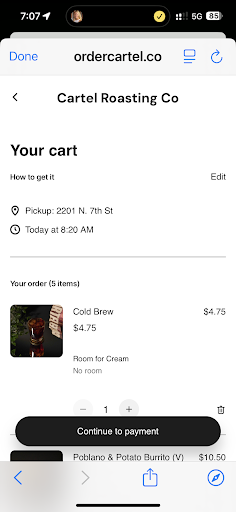 Great Coffee. But very disappointing staff. I drove from SD for a concert and saw that Cartel had a downtown location. Super excited that I could get some delicious coffee however that experience quickly diminished. The staff was rude when I said I wanted a pour over and they told me they were too busy to do it, so jokingly I was like āI drove all they here from San Diegoā and then staff member responded that there was a closer location in Palm Springs. I told this individual I had no problem waiting for them to make the coffee. I had nowhere to be so I didnāt mind but she wouldnāt make it. Cartel has always been one of my favorite place I would always get coffee in the Southwest Terminal in Phoenix airport when passing g through, however in this encounter very disappointing. Itās a coffee house of course you are going to be busy every morning!! Hellur!! The airport terminal is more busy than this particular location and they donāt seem to have a problem, making me a pourover. Donāt put a pullover on the menu if you arenāt gonna make it. Needless to say I bit my tongue hard as I would not allow this person to ruin my morning. Order a double Cortado and a two latte and tip generously. Maybe she had a bad morning but if that was my business she would have been let go in that instant. Whatās funny is seven minutes after placing my order it was dead. Nobody else was in line. The morning rush had...