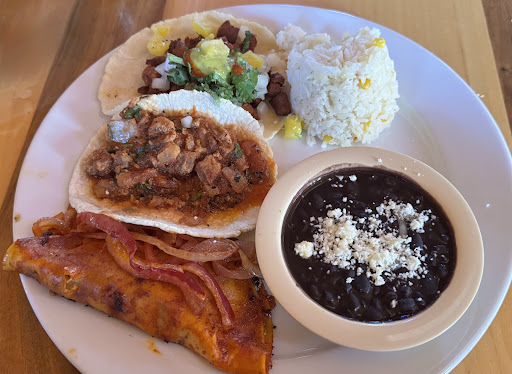 I was all set and pumped to order the cochonita pibil, but on a last second whim, went with the adventurous chiles en nogada covered in almond blonde sauce. I was curious how they'd do this, and was pleasantly surprised, though I'd recommend a modification for the chefs. It was uniquely sweet with pomegranate seeds sprinkled for interesting effect. Smallish pepper, but that's ok. The side pinto and rice were cooked perfectly to fill the belly. Try being a more reserved on the almond sauce... My plate was gobs more sauce than pepper... There was minimal flavor of anything beyond the almond.