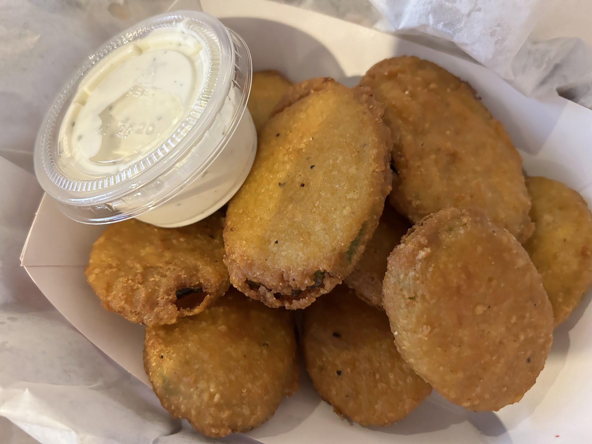 The food? It was good. Nothing stupendous, def nothing that would make us want to brave that dinky parking lot again. The garlic fries were a bit on the greasy side, and we both thought the fried zucchini could have been sliced thicker. My sister ordered a shake and I got the Sunkist float. I didn't taste the float but the float was really maybe two small scoops of ice cream in a large 44 oz cup so it was mostly soda.