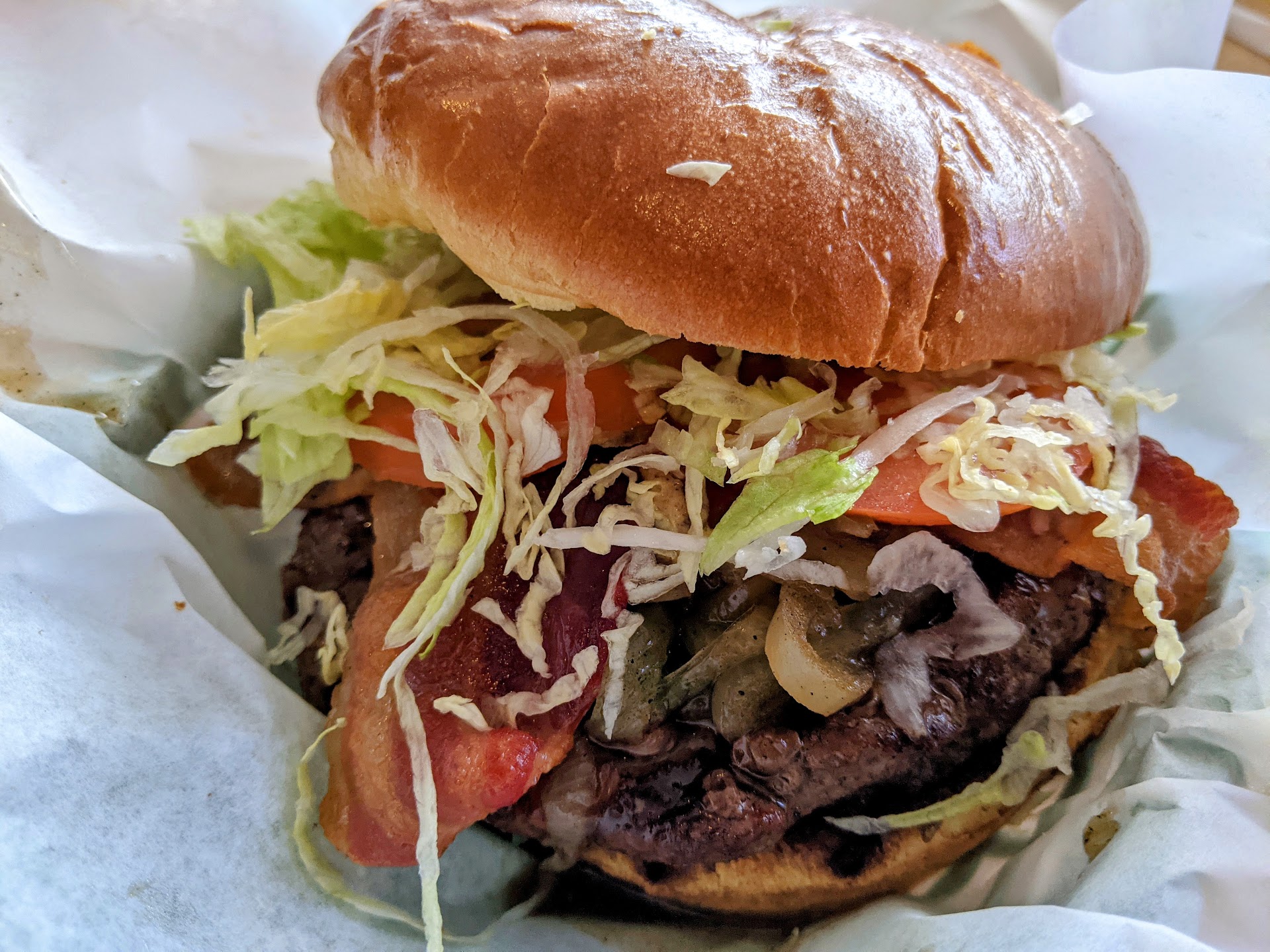 Old review Omg that was a dang good burger! I went in for my first time because a friend recommend it to me. All I had was a basic hamburger and fries. I was told after ordering it would take 15 minutes and it honestly came out in five. Can’t...