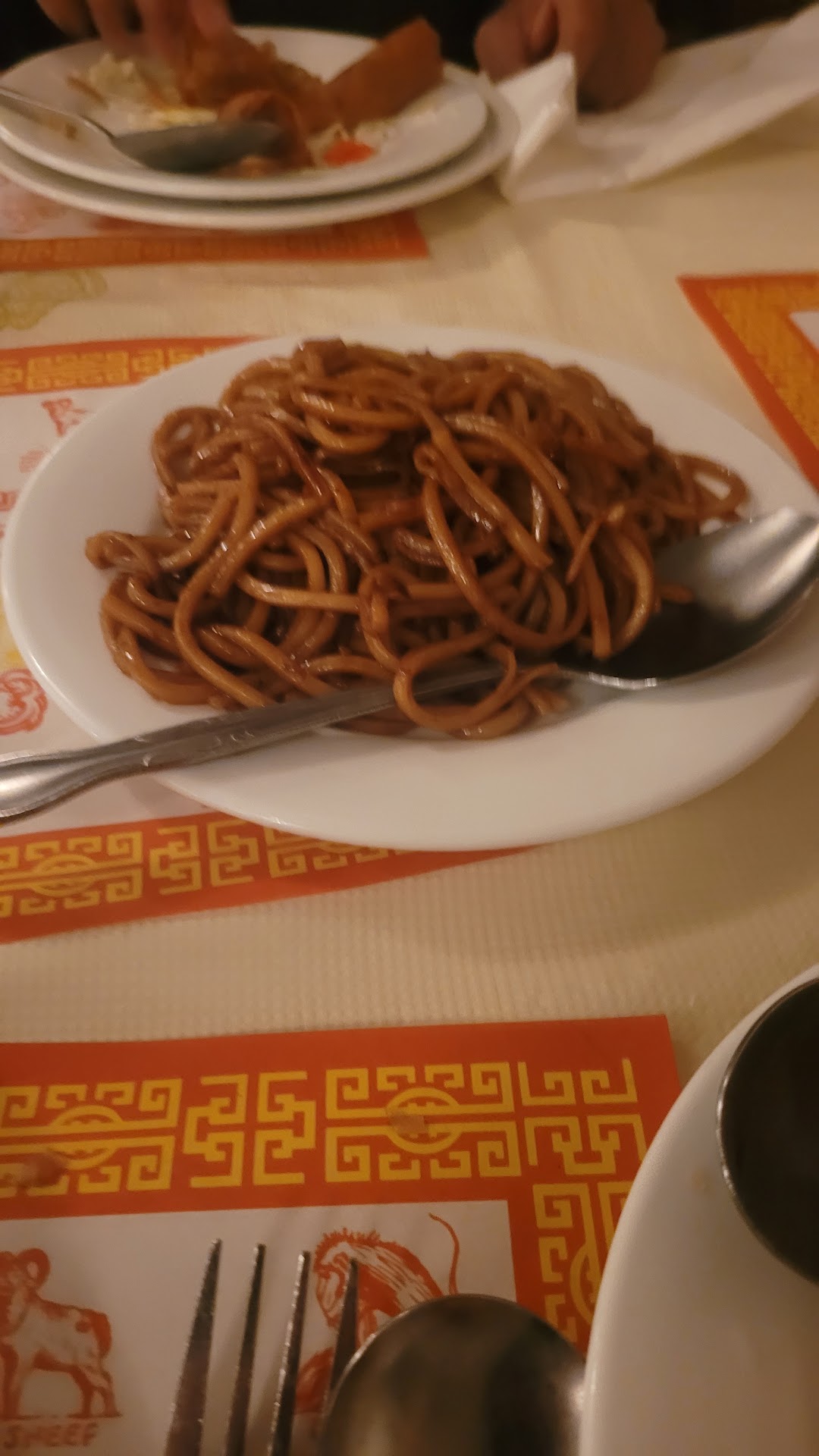 The food was done right. Possibly the best Mongolian Beef I have ever had. And I'm no fan of chicken, but my guest had it, and it was the prettiest sweet and sour chicken I have ever seen. The egg rolls were cut at an angle and displayed in a nice arrangement, but they were done a bit too hard in my opinion: they were crunchy and dark as if overcooked. I'm not familiar with their normal, but it was well done compared to the darkest ones I've had in my life. The steamed sticky rice was served in a cool fashion on the saucer with the bowl covering it, which kept it warm longer. The noodles, amazing flavor, perfectly cooked.