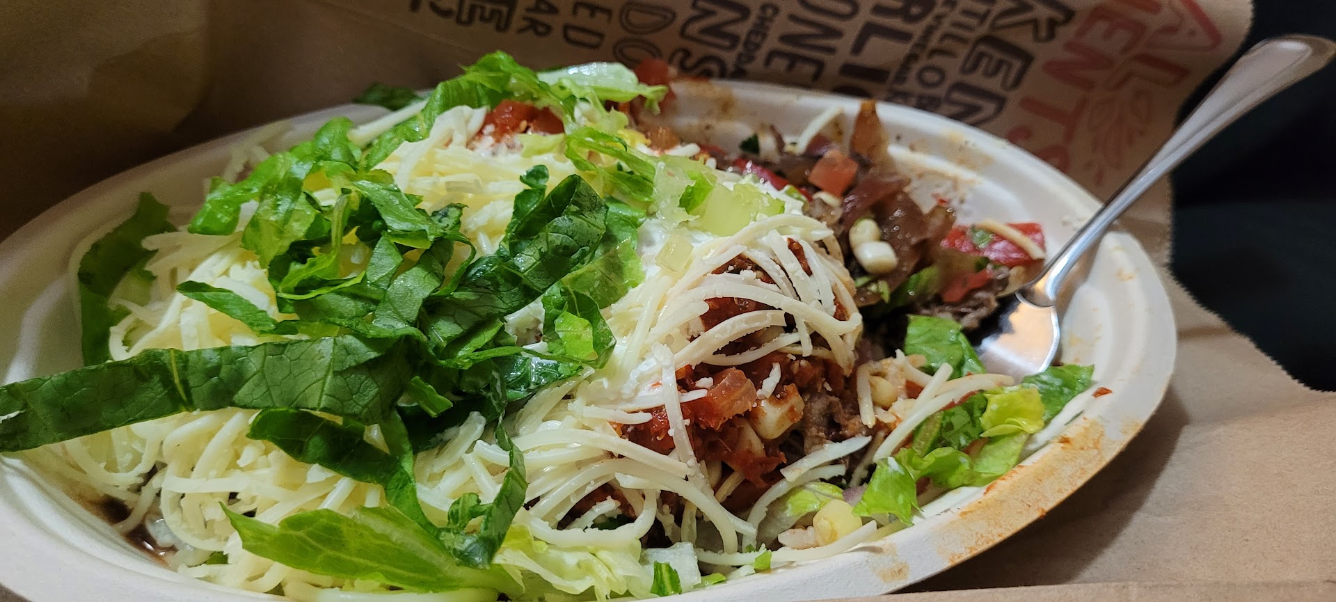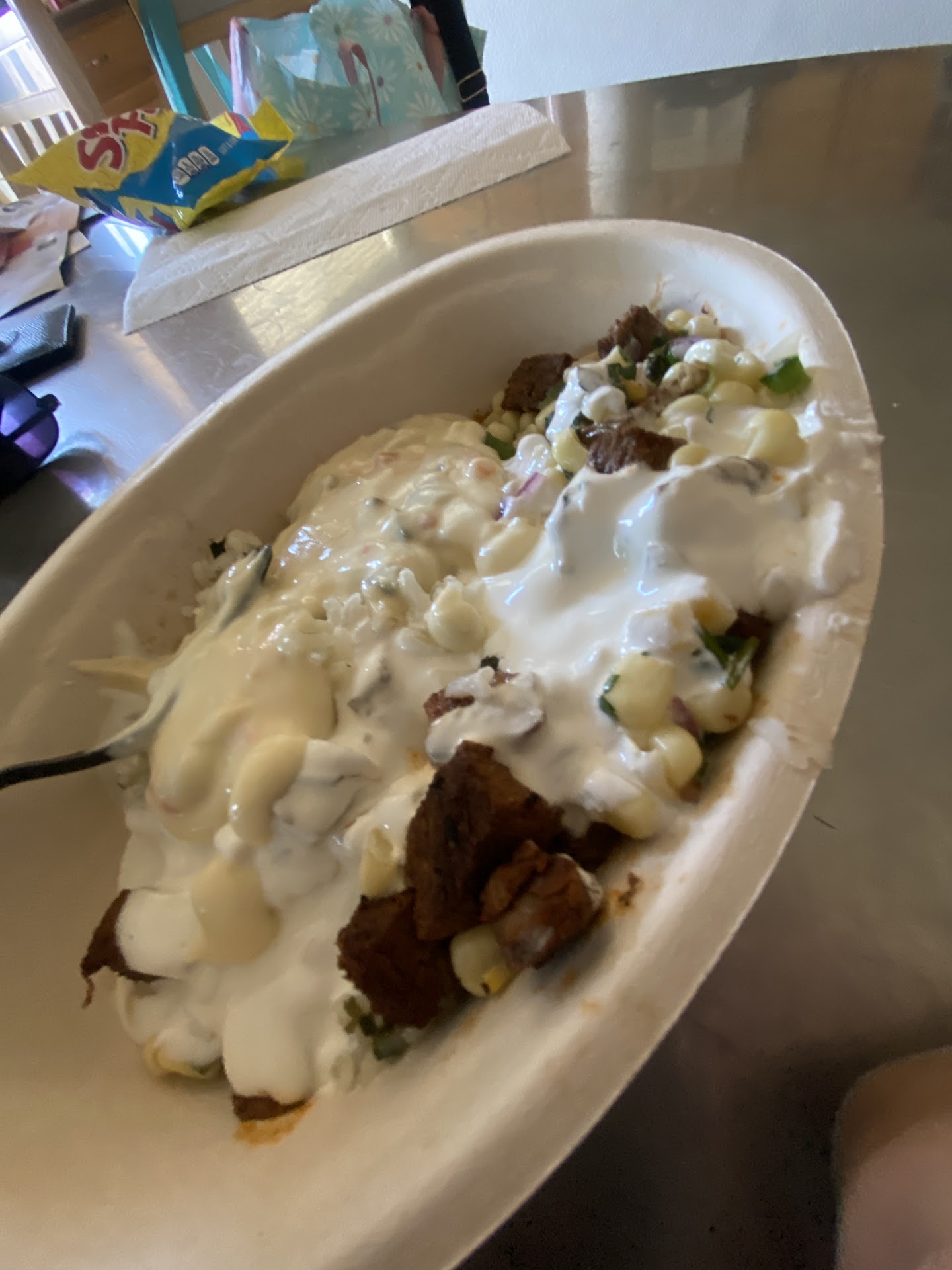 Have not had great experiences with Chipotle previously, but this is a different location. So I gave it a try. Unfortunately this one was worse than last time. I ordered a burrito. You're supposed to eat those with your hands. However my burrito had queso cheese all over the outside of the tortilla. An absolute mess. I wrapped a napkin around it so that I could hold it, but then the napkin got soggy and stuck to the tortilla. I had to just dump the contents out and eat it with a fork and toss the tortilla in the trash. There was a "special" meat available, Brisket! I love brisket. Of course there was an upcharge for this special ingredient. Well, they have no business calling that "brisket". Brisket isn't tough, dry, and chewy. So terribly disappointing... The tomatoes in the salsa were tough. There was a nice amount of them, but they were unnaturally chewy. Mildly disapointing that the two ingredients I wouldn't make a burrito without were also an upcharge, queso and guacamole. The resulting burrito cost $18... For that price I could have had a nice burrito at a restaurant along with chips, salsa, beans, and rice at no extra charge.