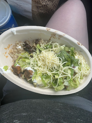 Although the food was very good, the woman who made my bowl seemed in a huge rush because of the line behind me and threw things together so quickly that my bowl was rather small, oddly proportioned (very little barbacoa, very little cheese, verry little Pico, and wayyy heavy on the guac) She also didn't take the time to refill the meat before she served me and it was alot of the juice scraped from the bottom. That was disappointing.. my husband and I also noticed that the meat was very poorly cut; the chicken chunks were not cut all the way through and the barbacoa, usually kind of shredded was in huge chunks, therefore it was not seasoned all the way through.
