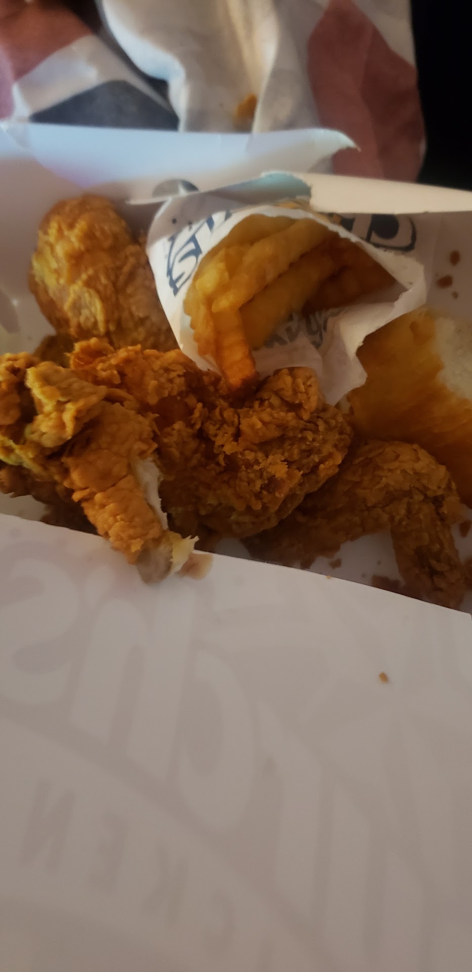 Ā Ā Ā Read moreWaited about 15 minutes just to get to the intercom, with only 2 cars in front of me. Once I got to intercom, they informed me that their CC machine is broken and only taking cash. Annoyed, but luckily I had my emergency cash, but not enough so had to readjust my order. After about another 10 minutes I make it to the window. Got drinks, then waited another 10 minutes for my food. By this time I'm super frustrated and annoyed, but having worked in the service industry I just take my food and go. I get home and the biscuits that go with the combo meals are missing and chicken is cold. Reheated chicken, no biggie. Finally sat down to have dinner... Nope! Couldn't eat it. It was the greasiest most flavorless chicken I had ever tried....