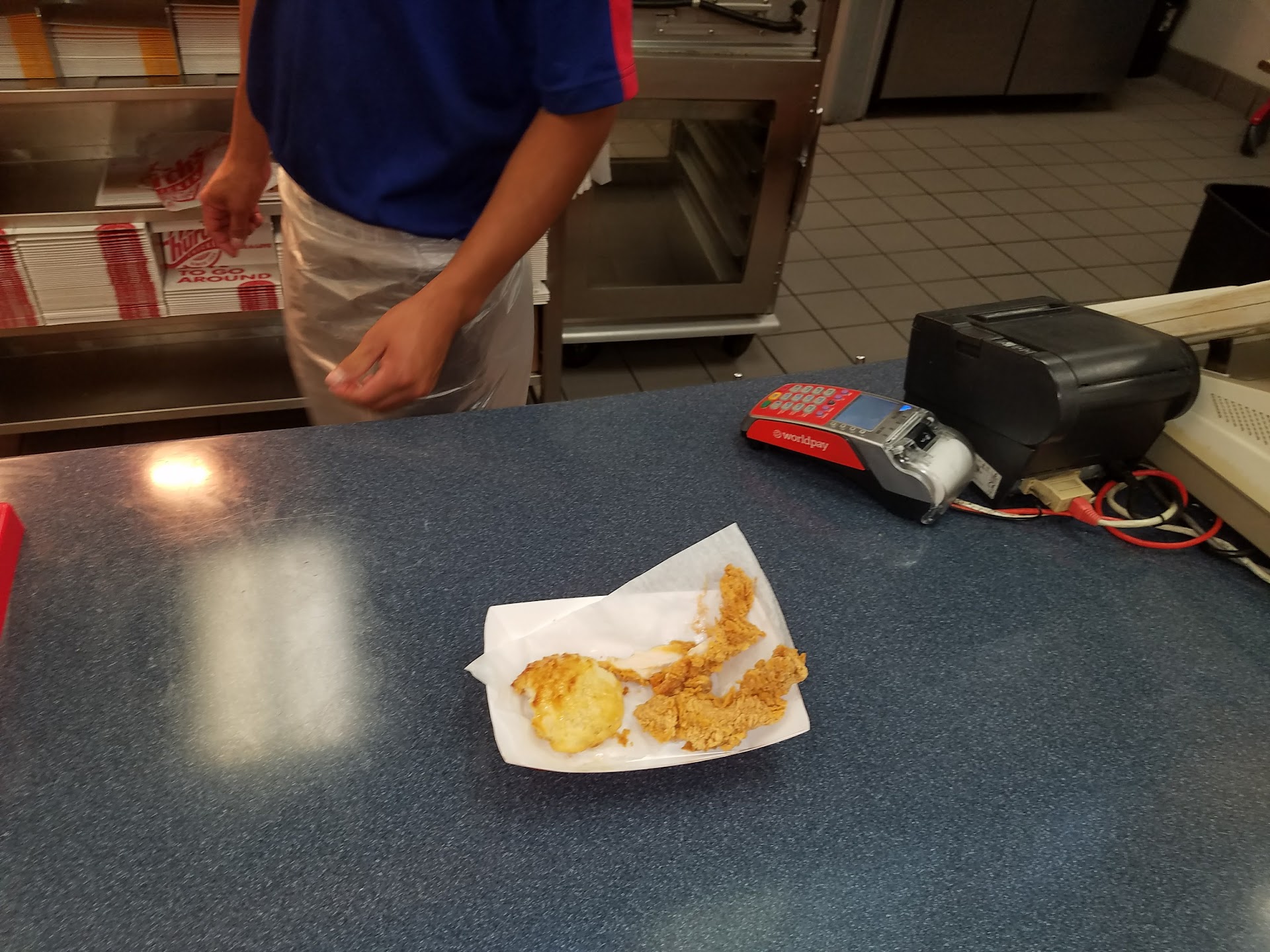 This past Saturday, November 10th, I went through the drive thru to pick up lunch, I purchased the 20 piece meal and a couple other items. The transaction was completed smoothly, I thought, and I left with my food. When I got home, I checked my phone and noticed I had a notification from my bank that I was overdrawn, I knew this was not correct because I had almost $200 in my account and the only thing I had purchased was the chicken order and my total was only $36.45. I checked my bank account and saw that Church's Chicken had charged me 5 times!!! I immediately drove back to Church's, I went inside and asked for the manager. I showed her my phone with my bank account pulled up, the 5 charges for $36.45 each and told her I needed her to fix that. She asked the boy (Albert?) who had been working in the drive thru, if he had run the card more than once, he said no. So she turned to me and said "We only charged you once." I showed her my phone again with my bank account showing the 5 separate charges for $36.45 each, she repeated that they had only charged me one time. I was completely flabbergasted, she was completely disinterested in helping me at all, or acknowledging that there were actually 5 charges for Church's Chicken. She proceeded to completely ignore me for the rest of the time I was standing there. I called my bank from the restaurant and was on the phone for about 15 minutes trying to fix the problem, but since the charges came from the restaurant, my bank said they were going to have to wait till the charges cleared my account to fix the issue and that they were only able to reverse 1 charge that day, leaving me with a whopping $0.30 in my account (this was incredibly frustrating since I had a whole day of errands to run and groceries to buy that I was not able to do because of this awful screw up). My bank said that the credit for the other charges should be back in my account the following morning. The following morning, the money had not been returned, I called the bank and they said they could not refund the rest of the money until the charges cleared the bank. Today is Wednesday, November 14th, the money is finally back in my account (minus the legitimate single charge of $36.45 for the order I received), this was by far, one of the most irritating, frustrating, and inconvenient experiences I have EVER had in my life. The complete lack of care or concern this location had for a customer is...