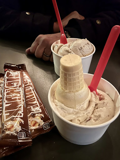 Read moreTLTR: Crowded chaos, and out of multiple toppings. Not a great experience. Although the ice cream itself was good, it is hard to mess up ice cream. The store is pretty small and there was a line out the door when we went. There is seating out back so while you are standing in line there are people going back out the front and you are constantly moving out of the way. They didnt have the sweet cream on the board for flavors like they did online and in the pamphlet in the store. They were out of the toffee sauce too which were the only things I wanted. My luck. My boyfriend got the strawberry shortcake, and they were out of strawberry sauce. The once piece of shortcake he got was really hard. Behind the desk seems a little chaotic. One guy took my order, the girl at the register asked for my order again and took my boyfriends order, the guy got my ice cream the girl got my boyfriends ice cream. there were 3 people and everyone was just bouncing around doing everything, everyone is at the register, everyone is getting the ice cream, everyone is getting the toppings. It would be easier and more efficient if they were like places like subway or Chipotle. One person scoops, slides your ice cream to the next person who adds the toppings, or makes it a shake ect, then gives it to the person at the...