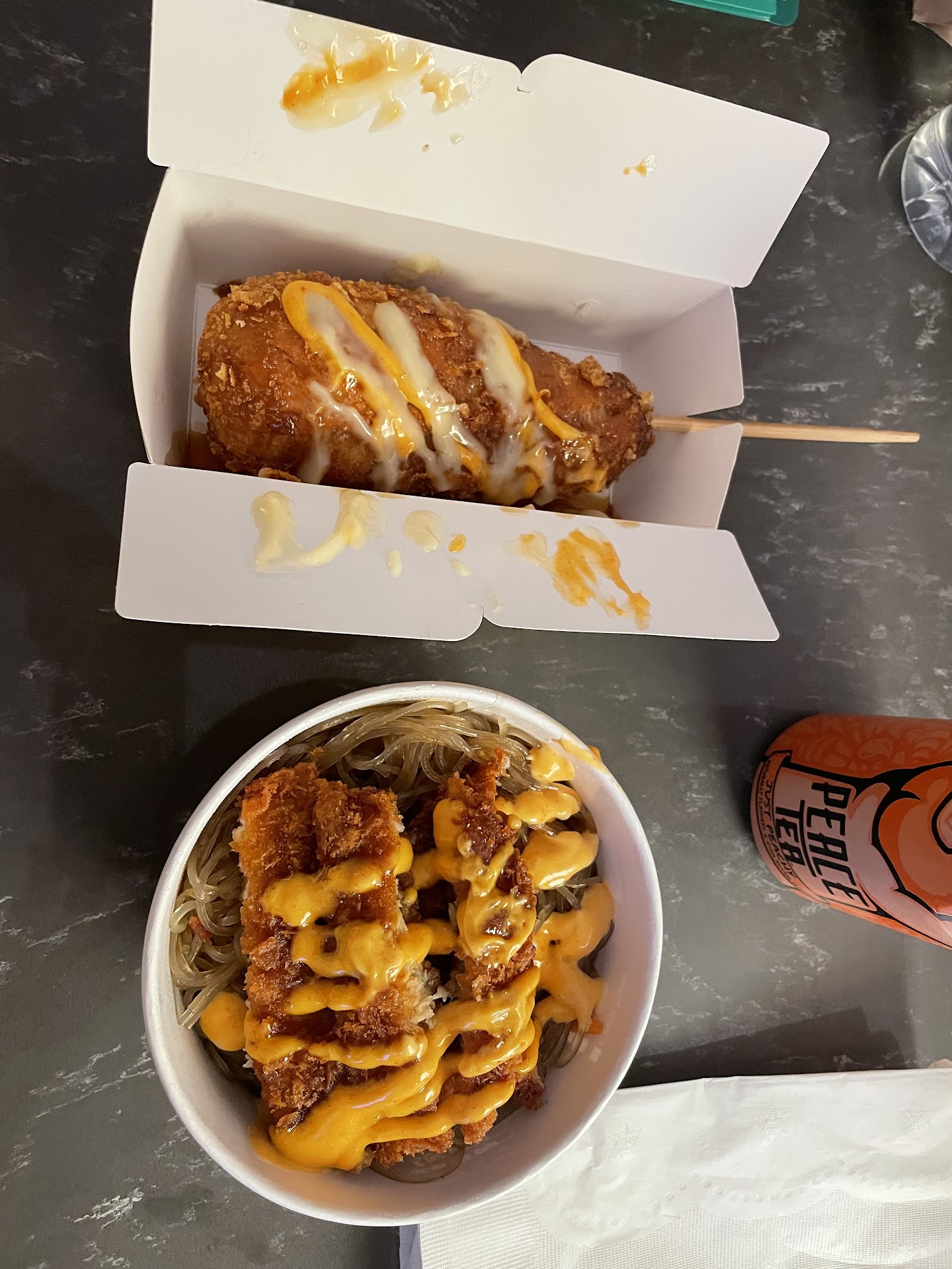 Read moreThis place is located downtown, so it is OK food if you are wanting something that isn't chipotle or jimmy johns or don't have access to authentic Korean restaurants or stores. In terms of KOREAN food, it is not that good. I got the combo bowl with spicy pork and chicken. The Kimchi is okay, it was unironically the best part. The fried chicken needed more sauce. The plain japchae "sweet glass noodles" meh. the spicy pork was good. They added something that tasted like ssamjang which did NOT pair well making it salty, and they put a sweet teriyaki like sauce over the rice making it soggy and clash with the flavors of the meats. The rice, which was at the bottom and i had to actively search for it, should have just been plain by default. The cabbage was meh and not really needed. The Mando was OK. Not really a difference from store bought frozen Mando once cooked. The sauce they included with the Mando (which may have been what they put on the rice) was not good and way too thick. While the plate serving is big and definitely great if you like leftovers, I am not sure if this will taste good as a leftover. I was hesitant and cautiously optimistic to try this place but wow it was more disappointing than I thought. IF I ever come here again, which will most likely be a last resort option for me, I will need to be very detailed in my order which is an inconvenience...