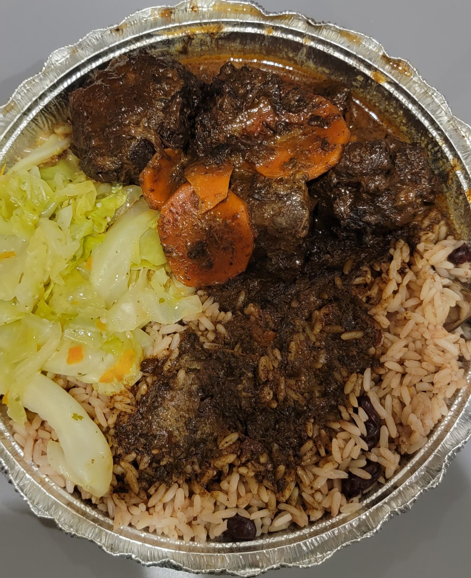 Oh, what a divine gastronomic journey I experienced at Desert Island Eatery in Phoenix! This hidden gem has truly stolen my heart with their mouthwatering delights. Allow me to share my delightful experience with their remarkable dishes: the Jerk Chicken over red bean and rice with cabbage and the Ox Tail over rice and cabbage.