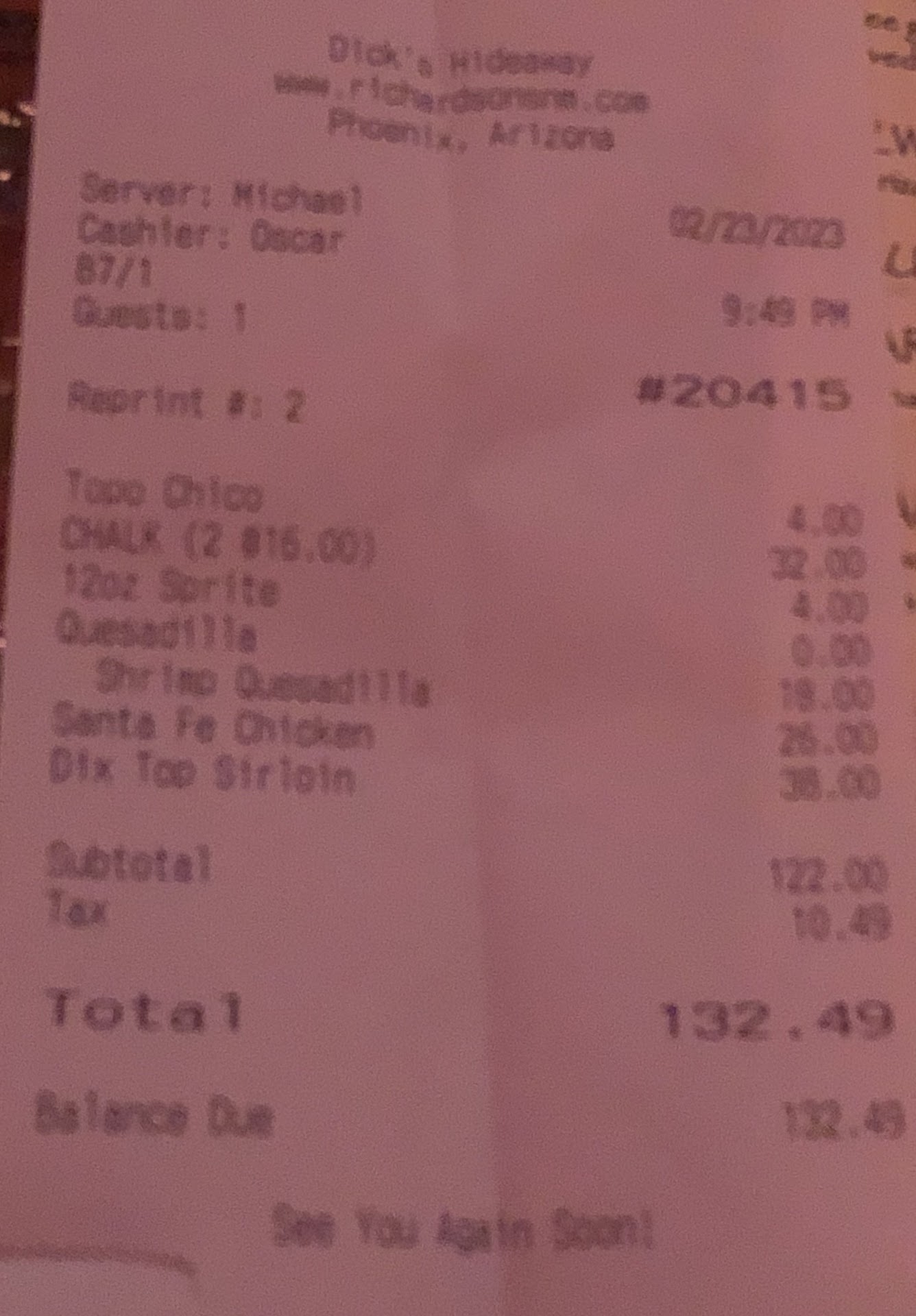 I'm going to start w the negatives - CHECK YOUR BANK STATEMENTS is my take away! To start service was HORRIBLE. We sat for 15min and all they brought was water. No one came to see if we wanted to place apps or drinks. After 20 min we grabbed someone and asked them if we had a server. They said yea what do you need. Weird. I explained we never been there and if he would go over the menu and what dicks is all about. He said all our food is good it's just what you're in the mood for - COOOOL super helpful! After 35 min we finally got to put our food order in. Then after about 45-50 mins a server came around and was attentive. I'm going to assume the server was on break and people were supposed to be watching his section and we're not. This guy was decent. Food was ok. Chips and guac was ok. My enchiladas were tasty. My friends steak had ZERO flavor and eggs came out over hard instead of over easy. Took 15-20 mins to get replacements - we were already done eating by the time they came out. My part of the bill came out too 42$ and some change I left a $6 tip cause I was So unimpressed w the experience. I check my bank account today and the server added an extra $2 to the bill. Called Dicks. No manager on site. Called Richard's no manager but they gave me the number to the manager. Phill said he's going to look into it but assured me cause I used Debit it does an automatic withdrawal and in a couple days it should reflect accordingly. But my bank statement has it as posted not pending. I hope he's correct. I know it's just two bucks. But it's principle after how bad our service experience was. If it autocorrects I'll re-edit this review but as of now I'm really disappointed in the experience and the taste of the enchilada's don't out weight...