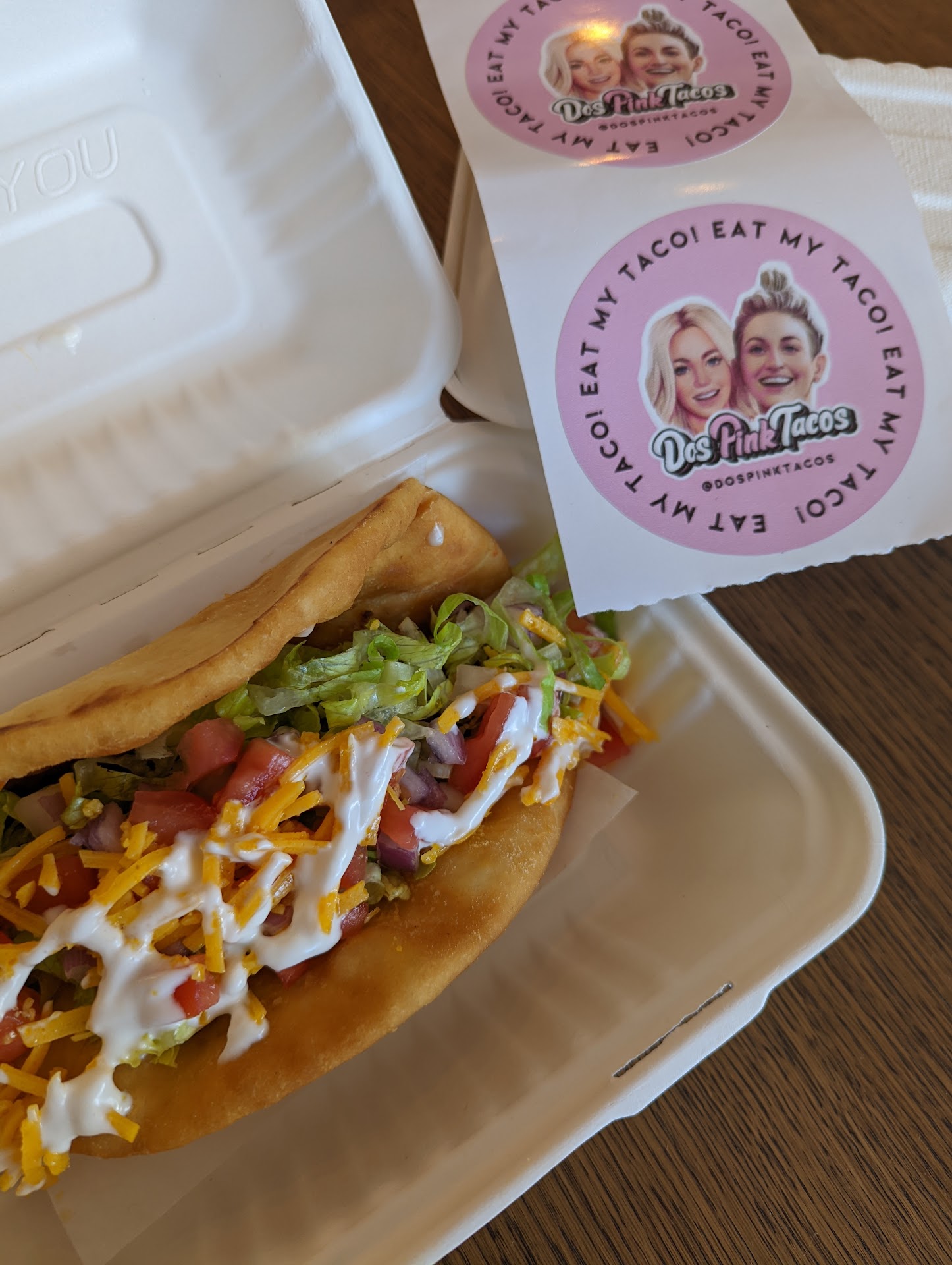 Read moreWow! So I dragged my non-vegan mother here. It’s been on my to-do list to try this place. Okay, listen. This is an absolute must try. We ordered a crunch wrap, a kids bean and cheese burrito, a kids pink taco, cheese fries, a chicky bang pink taco and the not your avo pink taco. Churro donuts for dessert.