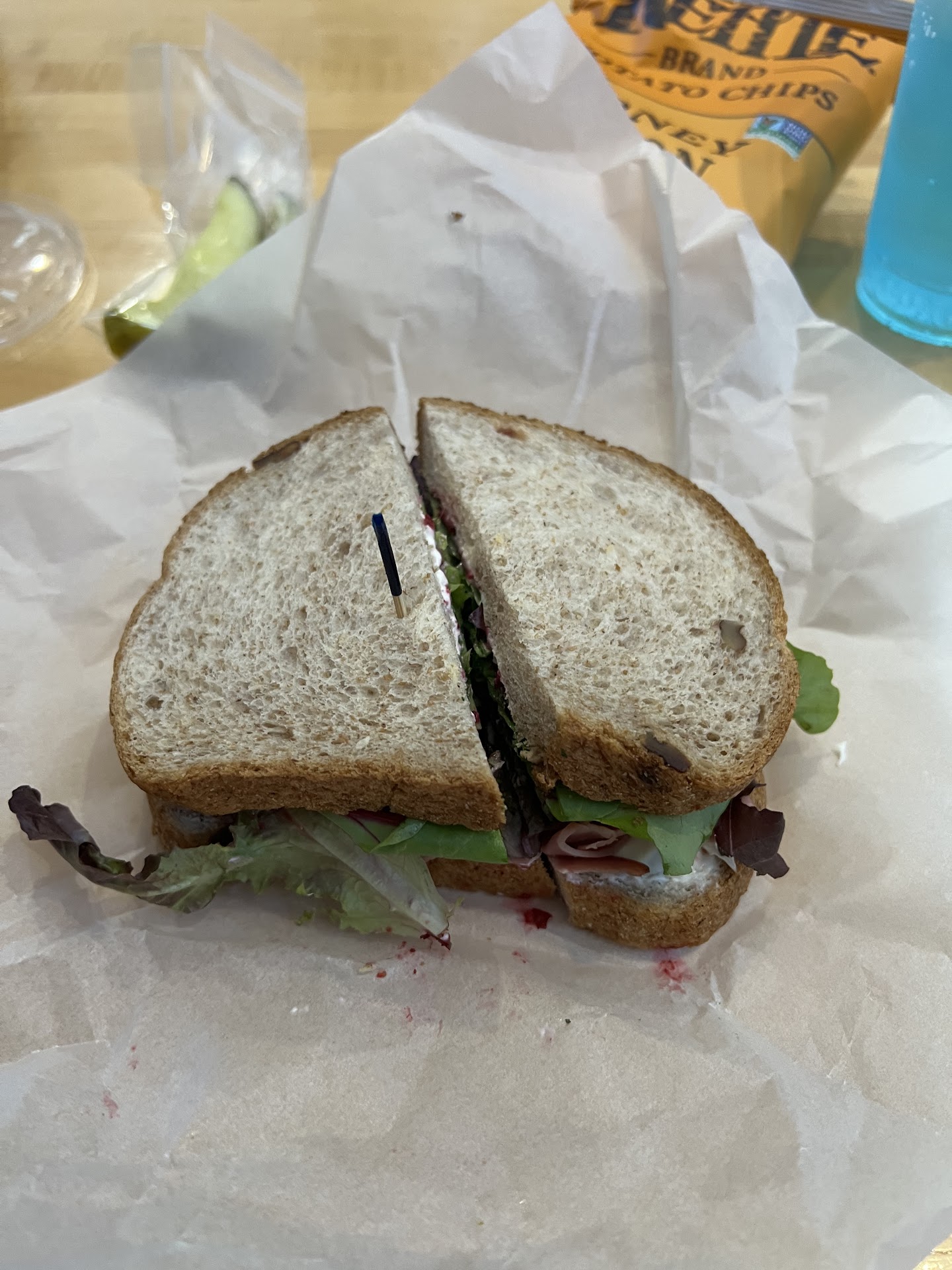 First of all, let's talk about the sandwiches. I did a ābuild your ownā with marinated chicken on sourdough bread. The bread? Oh, It's like they stole the recipe from heaven or something. Soft and pillowy on the inside, with just the right amount of crust on the outside. Chicken was tender too. You know how I like my toppings, I load them up.