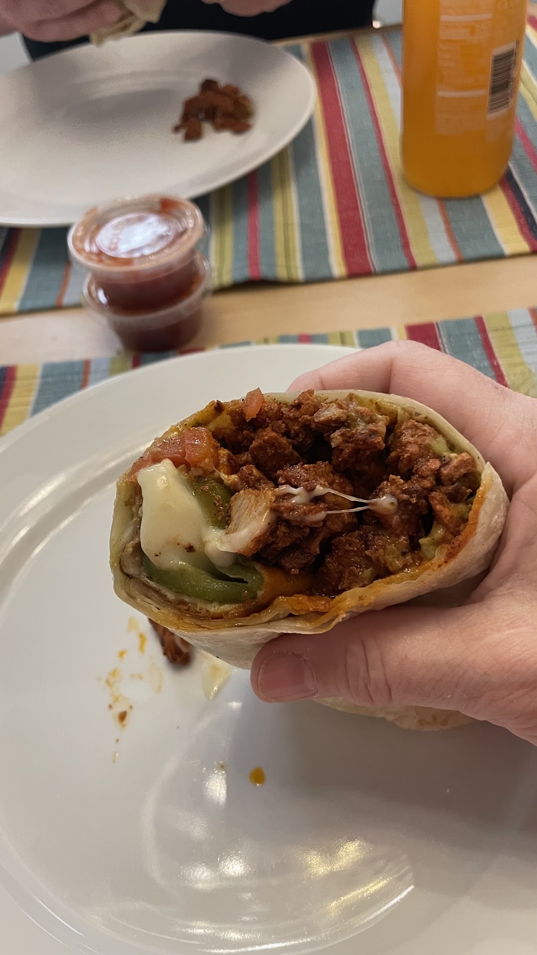 Read moreI used to always love ordering from here. The flour tortillas they use are light and fluffy and I love the flavor their red sauce has. The red sauce has just the right amount of spice to it. However it seems that lately if I order a cheese quesadilla I'm getting bits and pieces of stuff that aren't cheese in my cheese quesadilla. Now I'll admit that I've got the taste buds of a 5 year old, but when you order a cheese quesadilla and get a random bite with fresh onion in it, it's kind of disgusting. I know what they're doing, in an effort to save a few bucks they're taking the over thrown cheese off the line and putting it back into the container, but they're not picking out the lettuce, cilantro, onion, etc before they put it back. I'm hoping a manager sees this and decides the few dollars in lost cheese isn't worth driving customers to the competitor. Cause I'll say, Filibertos, while their tortillas aren't as good, never puts anything but cheese in my cheese...
