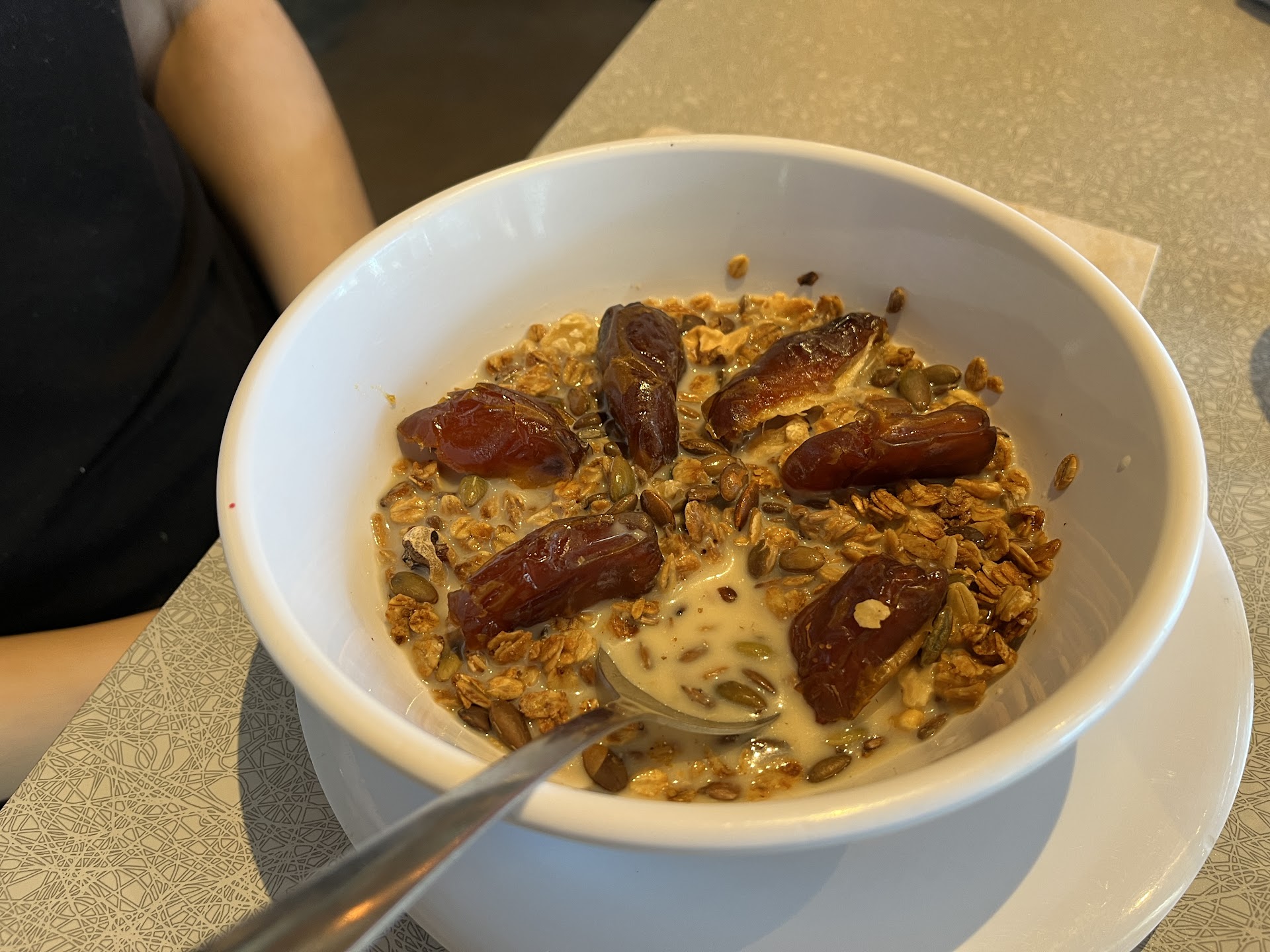 The first table we sat at was a safety hazard. The tabletop was unstable and unfit for use. This table was so unstable that there is no way that wait staff or others could not have known. This was not like unbalanced pedestals one has experienced from time to time; it was the mounting of the tabletop itself.
