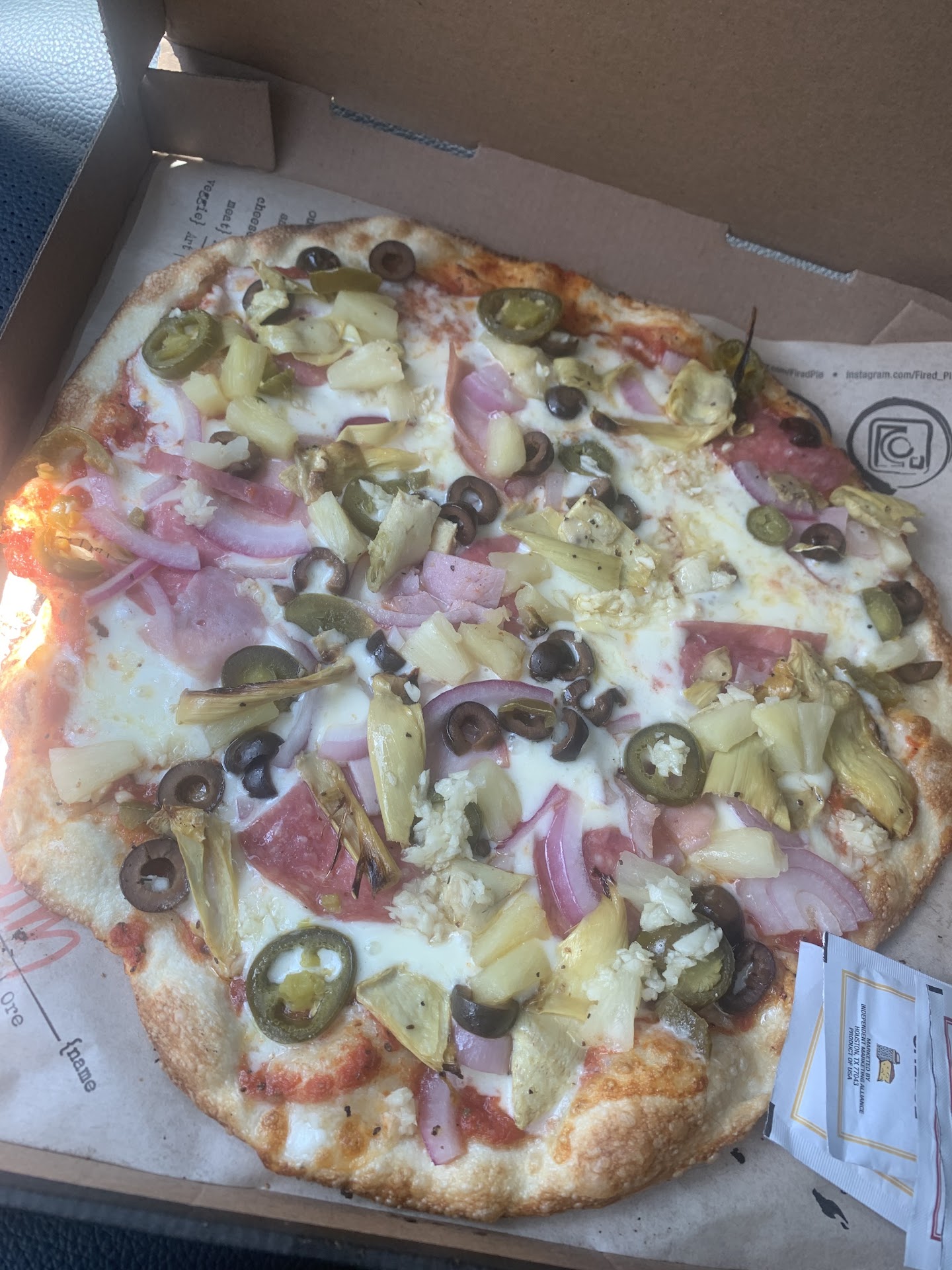 ย ย ย Read moreDrove from 33rd Avenue during lunch to this location. I knew I wanted either Fired Pie or Jimmy Johns (freaky fast), as I had limited time. I decided on Fired Pie, when I walked in it was great. Literally no one else in front of me. I walked right up and immediately ordered my pie. I was a little bummed as the shift manager making my pizza was a little stingy with the mushrooms but oh well I have noticed this place has gotten stingy with their meats and veggies lately. I paid and pie was placed into oven. For some reason the shift manager decided to hold a staff meeting right then and there directly in front of the oven. As she talked to 8 or 9 employees for over 10 min. Again in front of the oven, I watched my pizza burn. It wasn't until I made eye contact with an employee and made an annoyed face did they turn around to look at my pizza. The manager had them start another one immediately and continued to talk as if it was no bother to her. When the pizza was done, no apology or anything. My pizza was put in the oven at 2:06pm and I didn't get out of there until 2:23pm. Again, there were no customers ahead of me. I like Fire Pie, it's why I don't mind driving so far to get it on limited time. But I think I will pass on this...